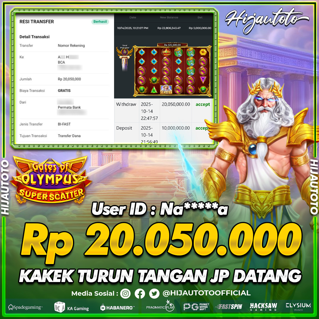 Selamat Kepada Member HIJAUTOTO NA****A Telah Jackpot Di SLOT GATES OF OLYMPUS SUPER SCATTER