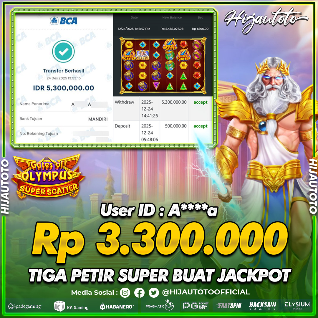Selamat Kepada Member HIJAUTOTO A****A Telah Jackpot Di SLOT GATES OF OLYMPUS SUPER SCATTER