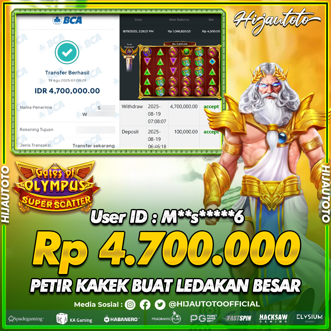 Selamat datang di HIJAUTOTO, tempatnya seru-seruan dan cuan besar! Mulai main cukup dengan modal Rp5.000 aja, taruhan super murah dari Rp100 perak! Mau main slot yang penuh warna? Atau togel dari 20 pasaran paling hits? Atau mungkin tembak ikan yang bikin deg-degan? Tenang, ada juga taruhan bola, sabung ayam, dan live casino yang bikin suasana makin hidup! Daftar sekarang dan dapetin bonus new member 100% langsung, biar modalmu makin tebal. Deposit gampang banget, bisa pakai QRIS, dan kalau butuh bantuan, customer service kita siap 24 jam nonstop. Jadi, tunggu apa lagi? Yuk, gabung dan bawa pulang kemenangannya cuma di HIJAUTOTO!