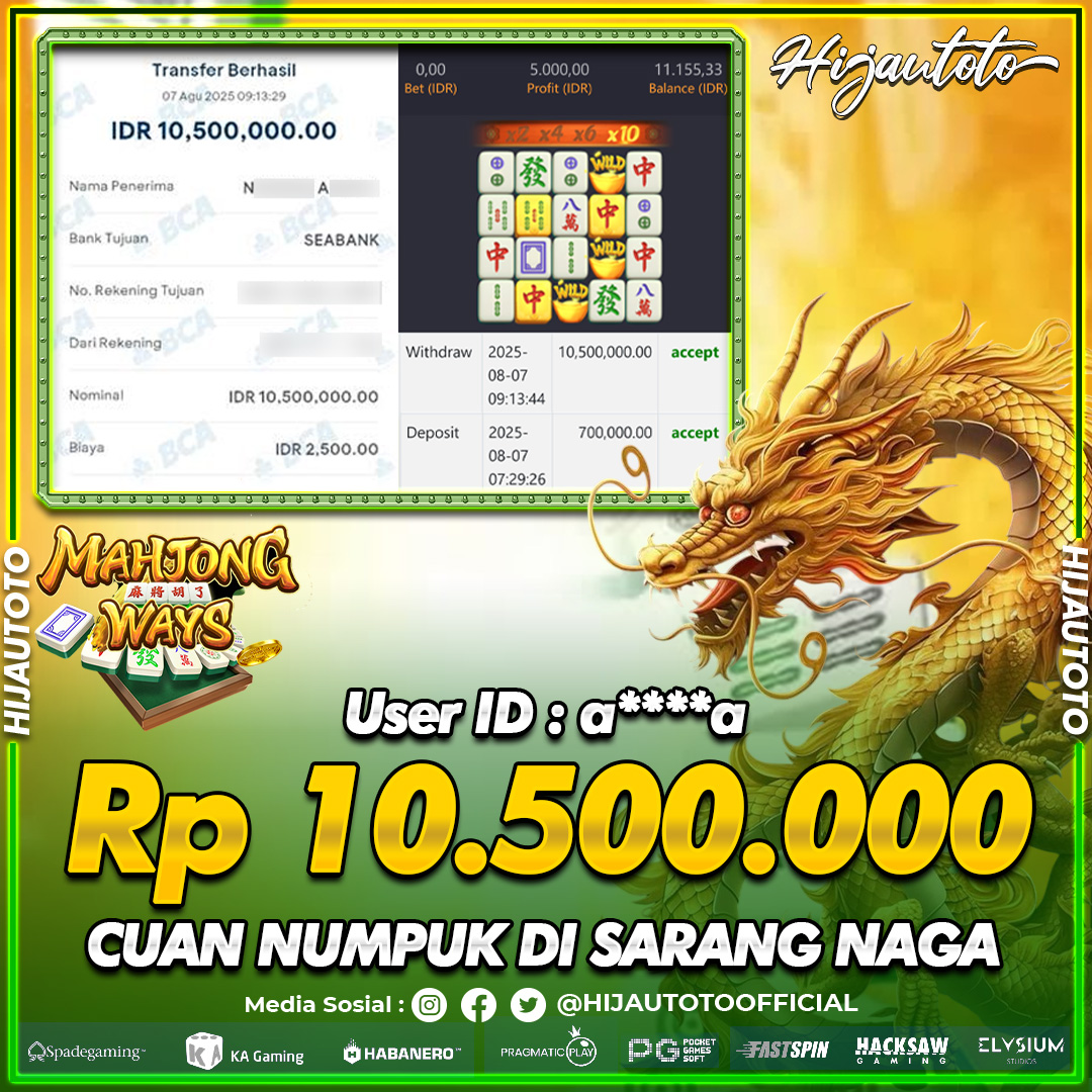 Selamat datang di HIJAUTOTO, tempatnya seru-seruan dan cuan besar! Mulai main cukup dengan modal Rp5.000 aja, taruhan super murah dari Rp100 perak! Mau main slot yang penuh warna? Atau togel dari 20 pasaran paling hits? Atau mungkin tembak ikan yang bikin deg-degan? Tenang, ada juga taruhan bola, sabung ayam, dan live casino yang bikin suasana makin hidup! Daftar sekarang dan dapetin bonus new member 100% langsung, biar modalmu makin tebal. Deposit gampang banget, bisa pakai QRIS, dan kalau butuh bantuan, customer service kita siap 24 jam nonstop. Jadi, tunggu apa lagi? Yuk, gabung dan bawa pulang kemenangannya cuma di HIJAUTOTO!