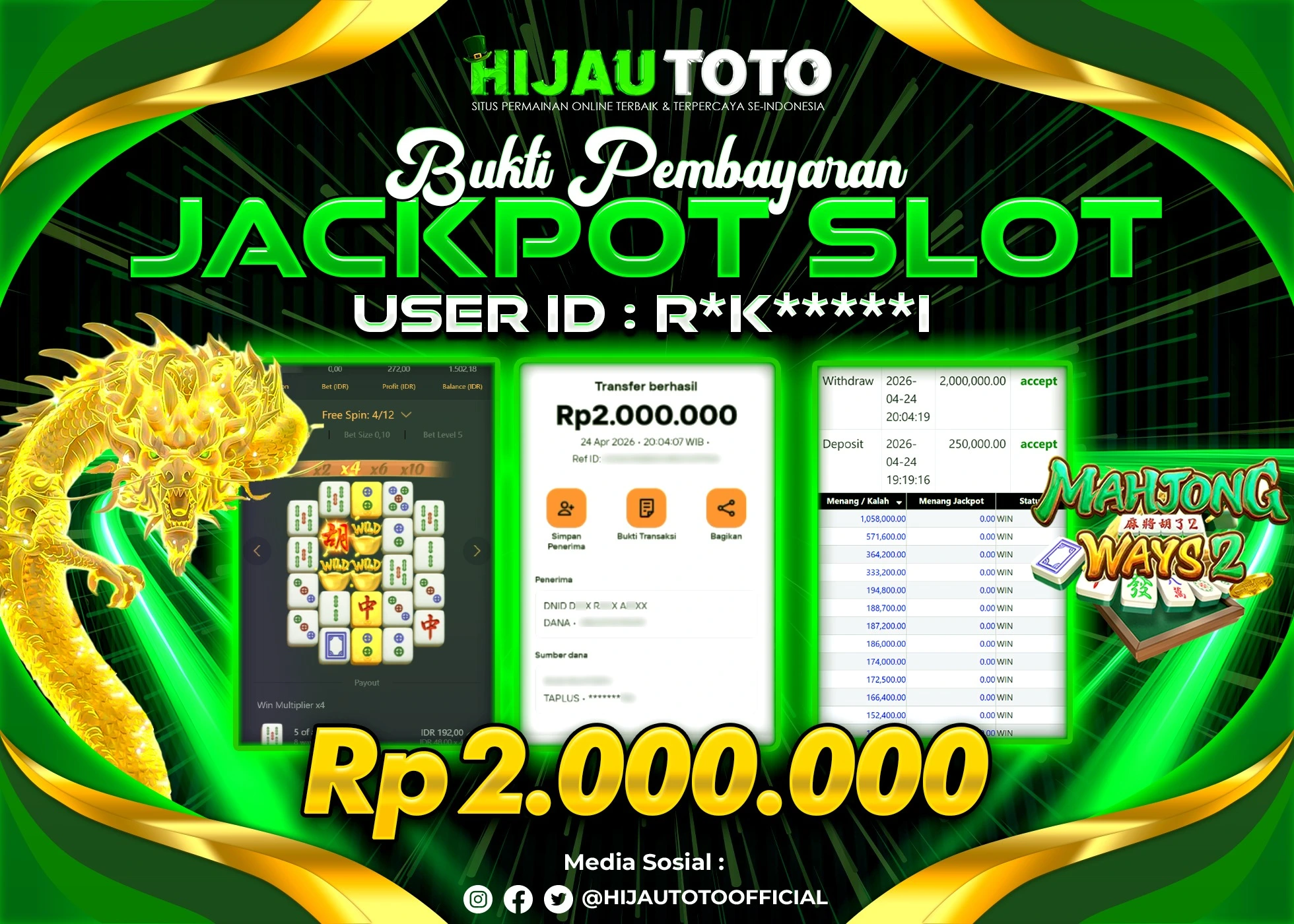 Bergabung dengan HIJAUTOTO sangat mudah dan cepat. Cukup lakukan pendaftaran dengan data lengkap, lakukan deposit minimal Rp5.000 melalui berbagai metode termasuk QRIS, dan mulai bertaruh dengan minimal taruhan Rp100. Dapatkan juga bonus new member 100% untuk modal bermain lebih besar.