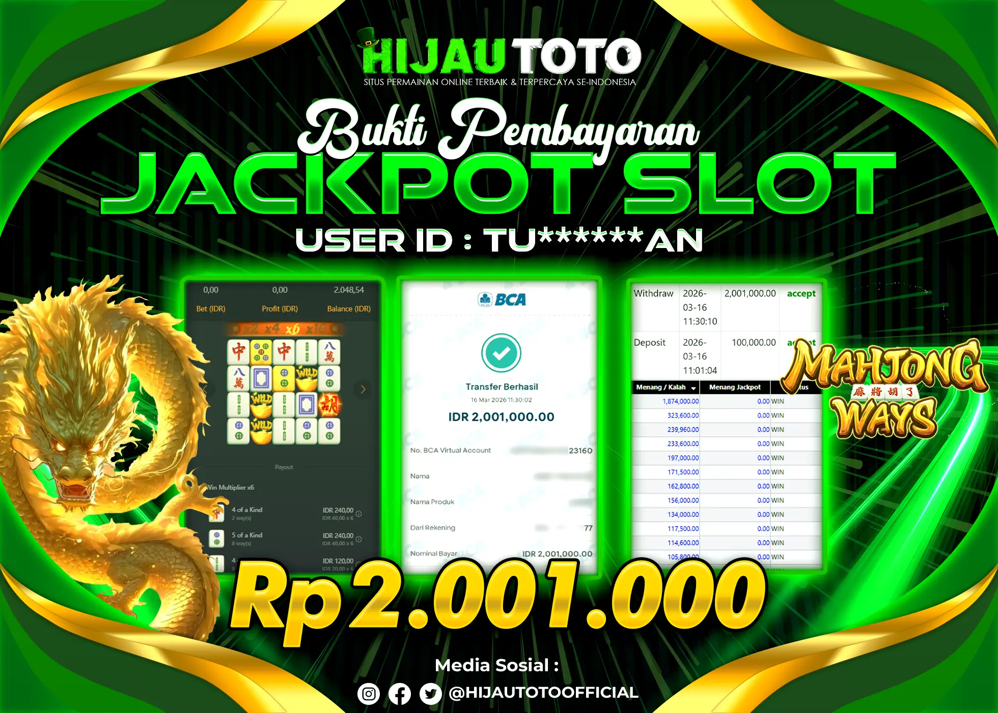 Bergabung dengan HIJAUTOTO sangat mudah dan cepat. Cukup lakukan pendaftaran dengan data lengkap, lakukan deposit minimal Rp5.000 melalui berbagai metode termasuk QRIS, dan mulai bertaruh dengan minimal taruhan Rp100. Dapatkan juga bonus new member 100% untuk modal bermain lebih besar.