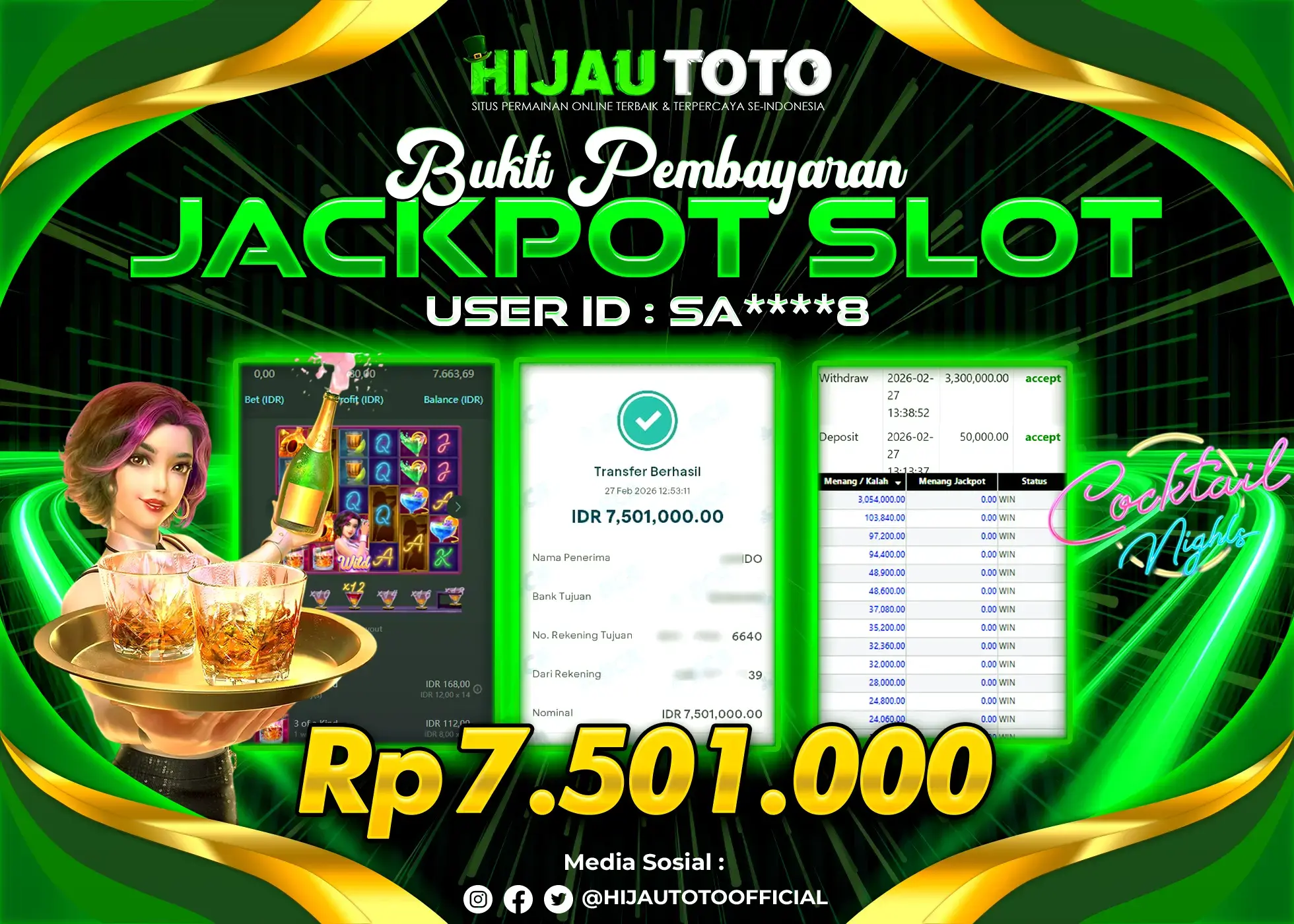 Selamat datang di HIJAUTOTO, tempatnya seru-seruan dan cuan besar! Mulai main cukup dengan modal Rp5.000 aja, taruhan super murah dari Rp100 perak! Mau main slot yang penuh warna? Atau togel dari 20 pasaran paling hits? Atau mungkin tembak ikan yang bikin deg-degan? Tenang, ada juga taruhan bola, sabung ayam, dan live casino yang bikin suasana makin hidup! Daftar sekarang dan dapetin bonus new member 100% langsung, biar modalmu makin tebal. Deposit gampang banget, bisa pakai QRIS, dan kalau butuh bantuan, customer service kita siap 24 jam nonstop. Jadi, tunggu apa lagi? Yuk, gabung dan bawa pulang kemenangannya cuma di HIJAUTOTO!