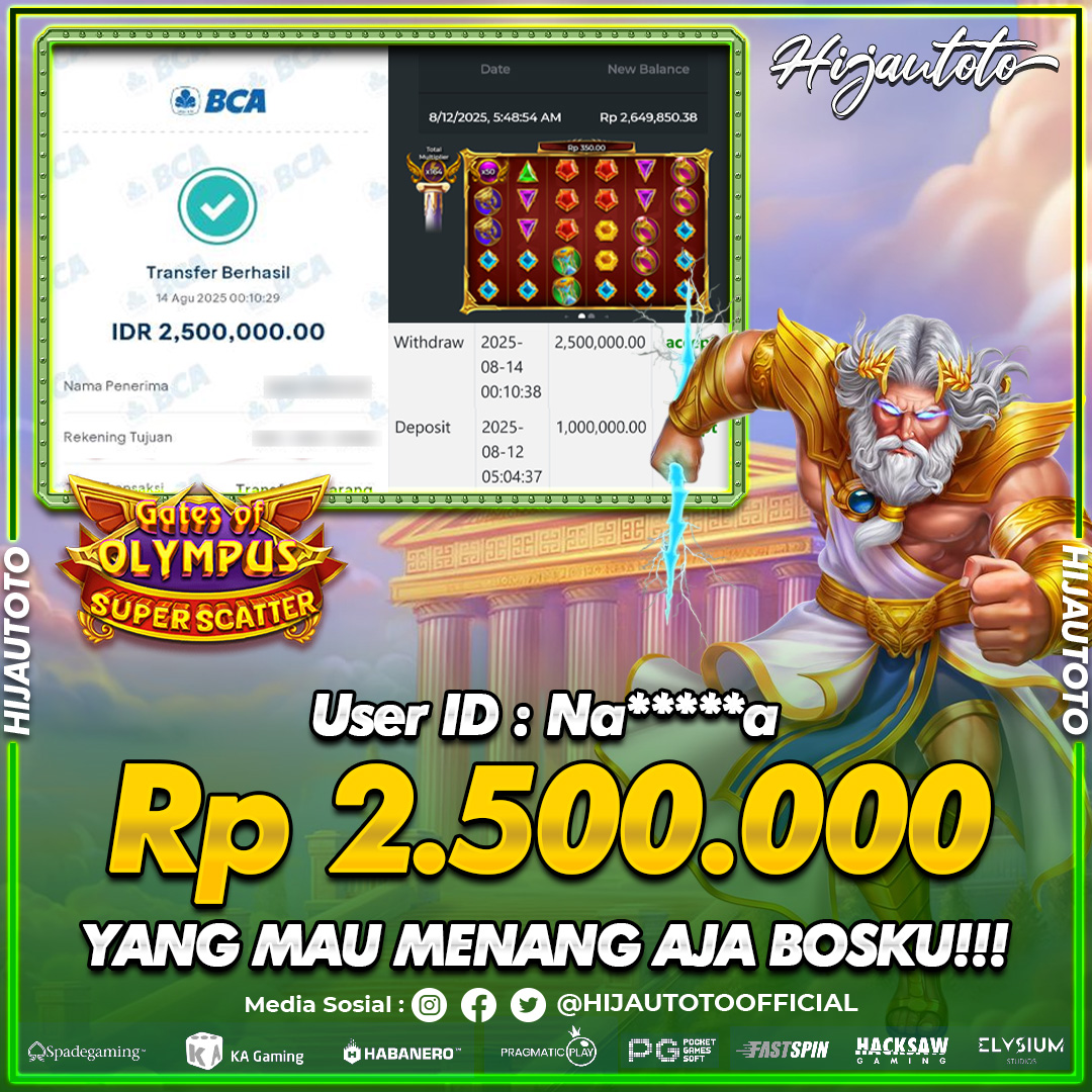Selamat Kepada Member HIJAUTOTO PA******88 Telah Jackpot Di SLOT GATES OF OLYMPUS SUPER SCATTER