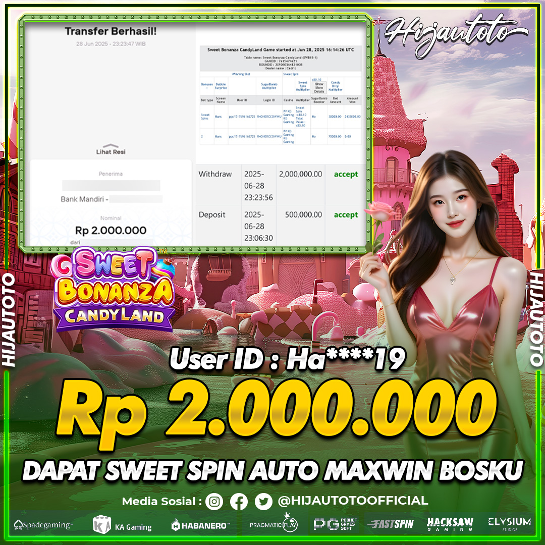 Selamat Kepada Member HIJAUTOTO HA****19 Telah Jackpot Di LIVE CASINO SWEET BONANZA CANDYLAND
