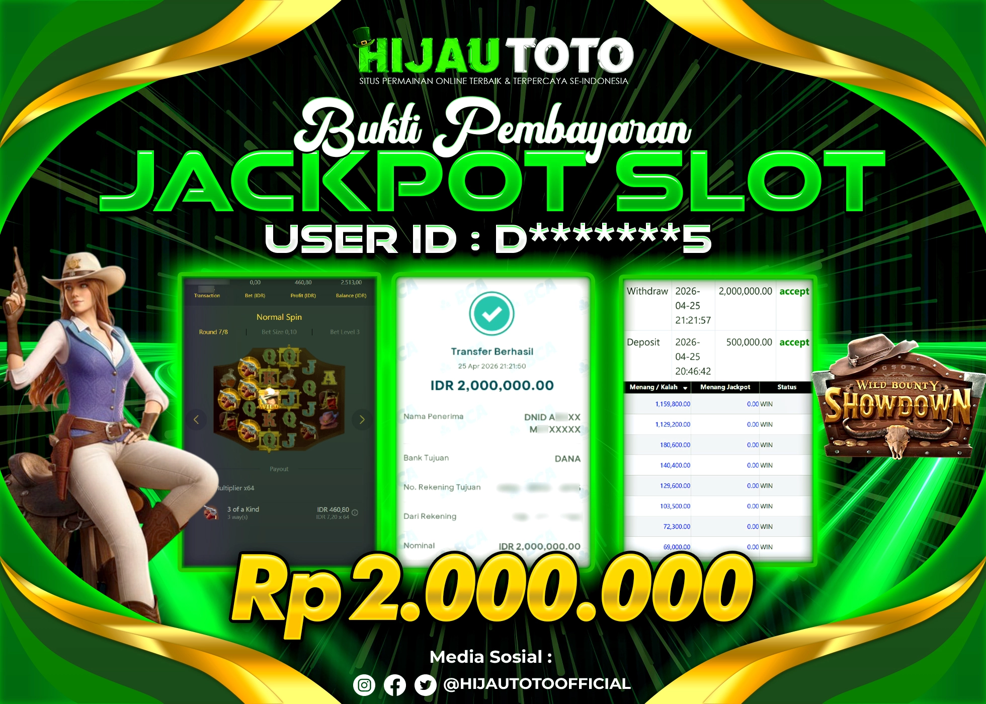 Selamat datang di HIJAUTOTO, tempatnya seru-seruan dan cuan besar! Mulai main cukup dengan modal Rp5.000 aja, taruhan super murah dari Rp100 perak! Mau main slot yang penuh warna? Atau togel dari 20 pasaran paling hits? Atau mungkin tembak ikan yang bikin deg-degan? Tenang, ada juga taruhan bola, sabung ayam, dan live casino yang bikin suasana makin hidup! Daftar sekarang dan dapetin bonus new member 100% langsung, biar modalmu makin tebal. Deposit gampang banget, bisa pakai QRIS, dan kalau butuh bantuan, customer service kita siap 24 jam nonstop. Jadi, tunggu apa lagi? Yuk, gabung dan bawa pulang kemenangannya cuma di HIJAUTOTO!