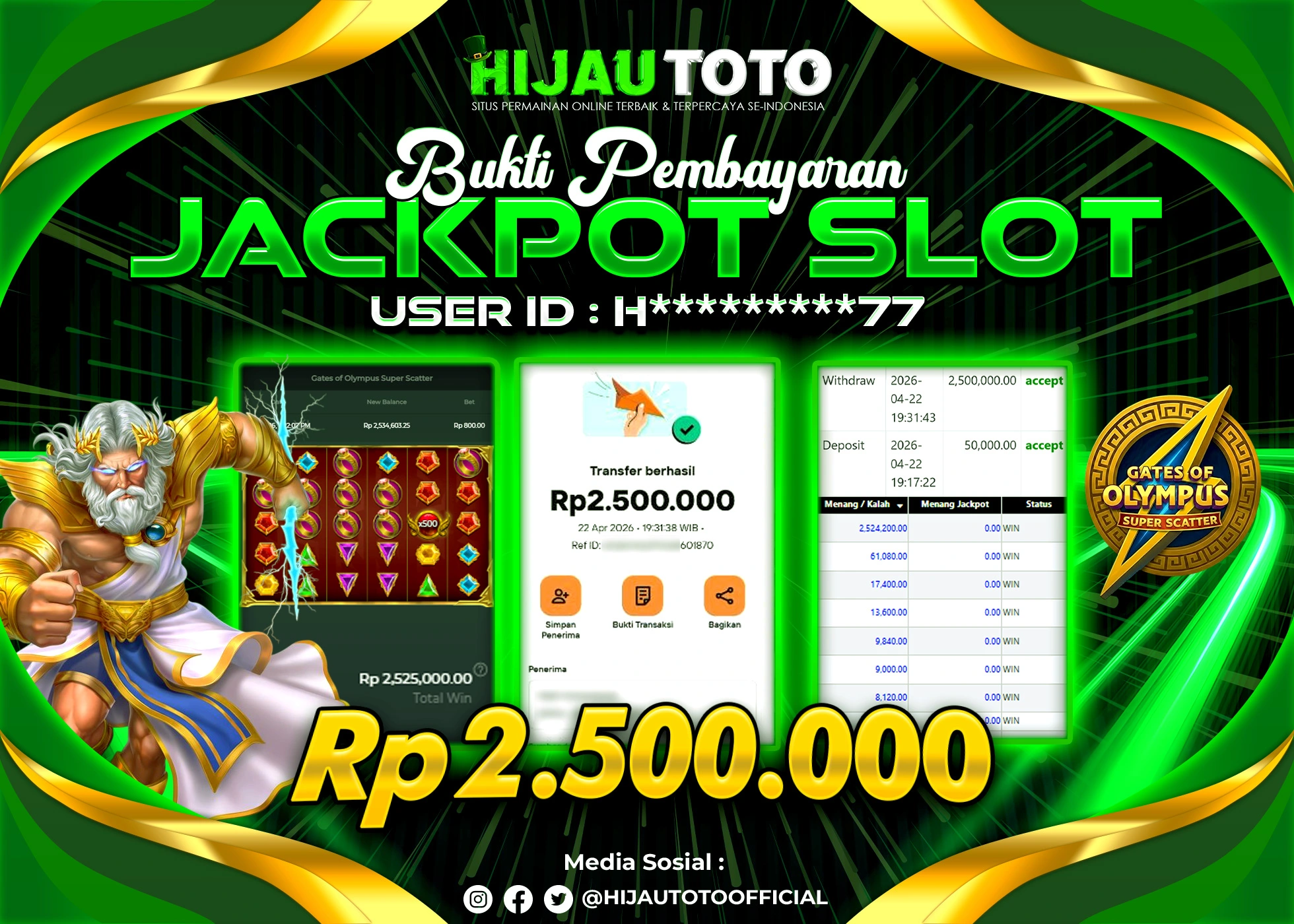 Bergabung dengan HIJAUTOTO sangat mudah dan cepat. Cukup lakukan pendaftaran dengan data lengkap, lakukan deposit minimal Rp5.000 melalui berbagai metode termasuk QRIS, dan mulai bertaruh dengan minimal taruhan Rp100. Dapatkan juga bonus new member 100% untuk modal bermain lebih besar.