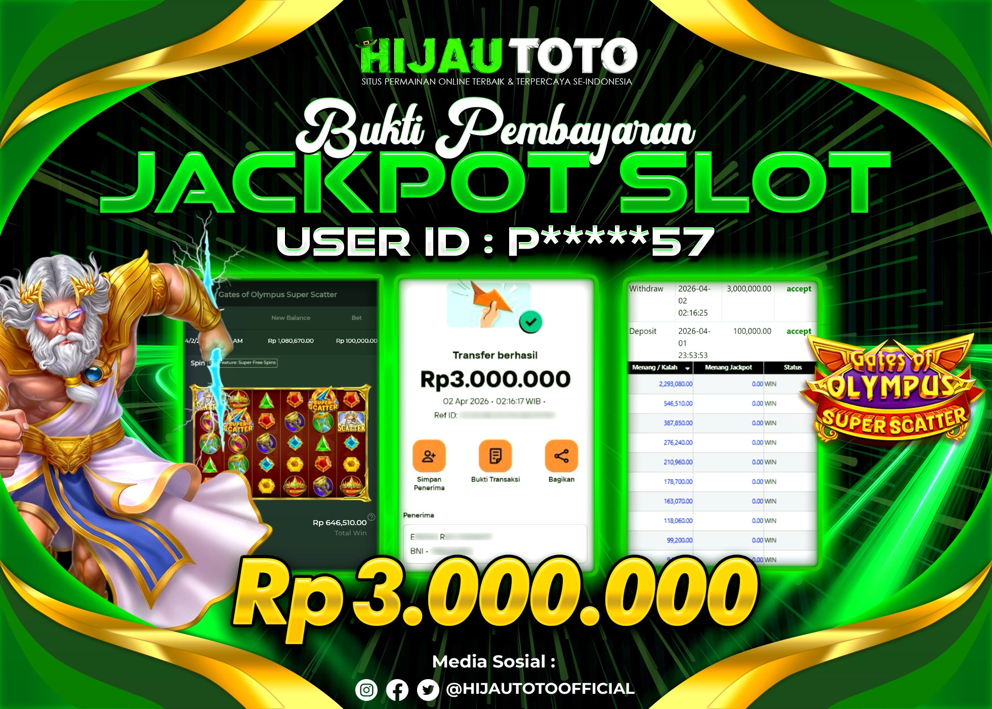Cuma di HIJAUTOTO, tempat paling AMAN, CEPAT, & TERPERCAYA buat pecinta game SLOT GATES OF OLYMPUS SUPER SCATTER!