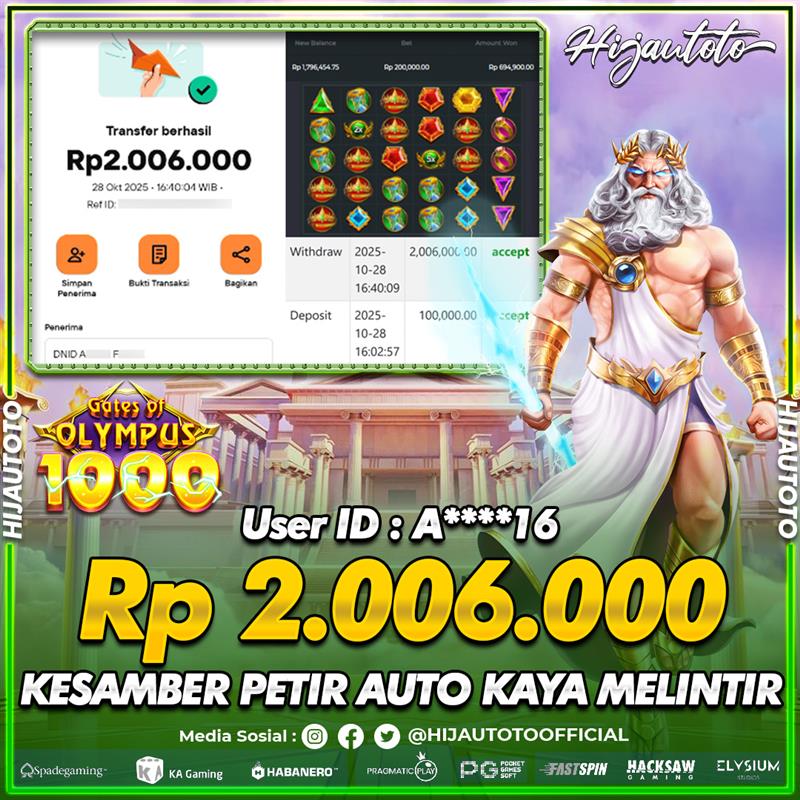 β¨ JACKPOT DI SLOT GATES OF OLYMPUS 1000 β¨