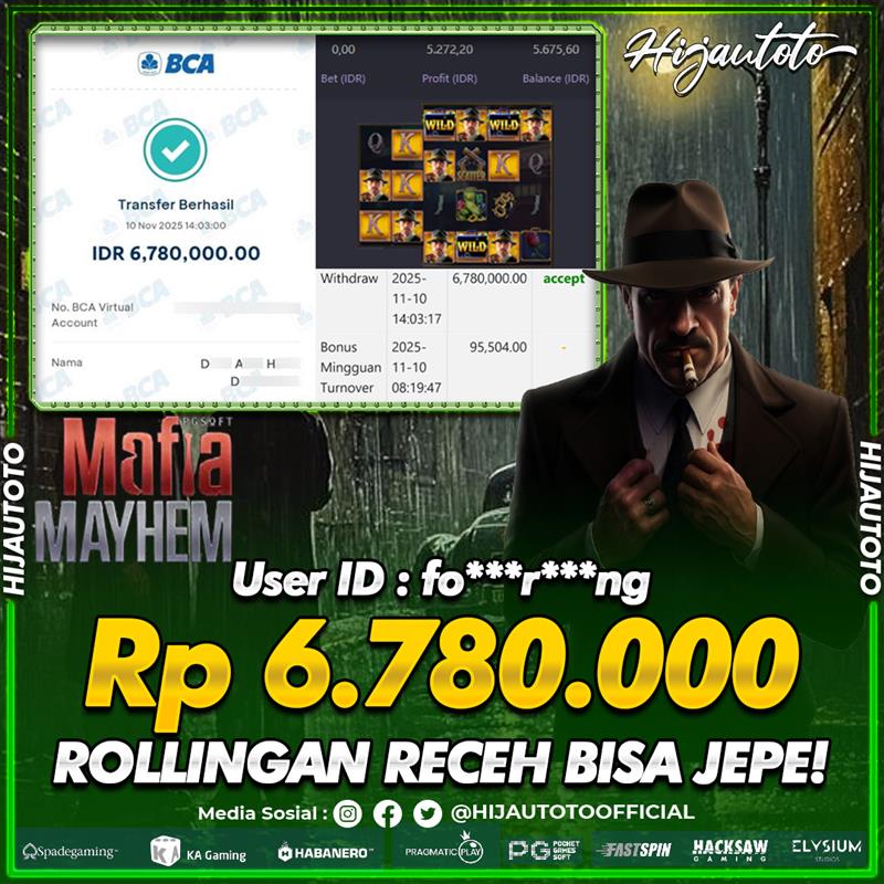 Selamat Kepada Member HIJAUTOTO FO*******NG Telah Jackpot Di SLOT MAFIA MAYHEM