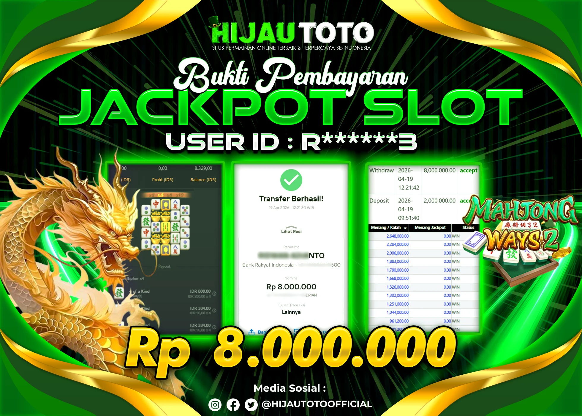 Bergabung dengan HIJAUTOTO sangat mudah dan cepat. Cukup lakukan pendaftaran dengan data lengkap, lakukan deposit minimal Rp5.000 melalui berbagai metode termasuk QRIS, dan mulai bertaruh dengan minimal taruhan Rp100. Dapatkan juga bonus new member 100% untuk modal bermain lebih besar.