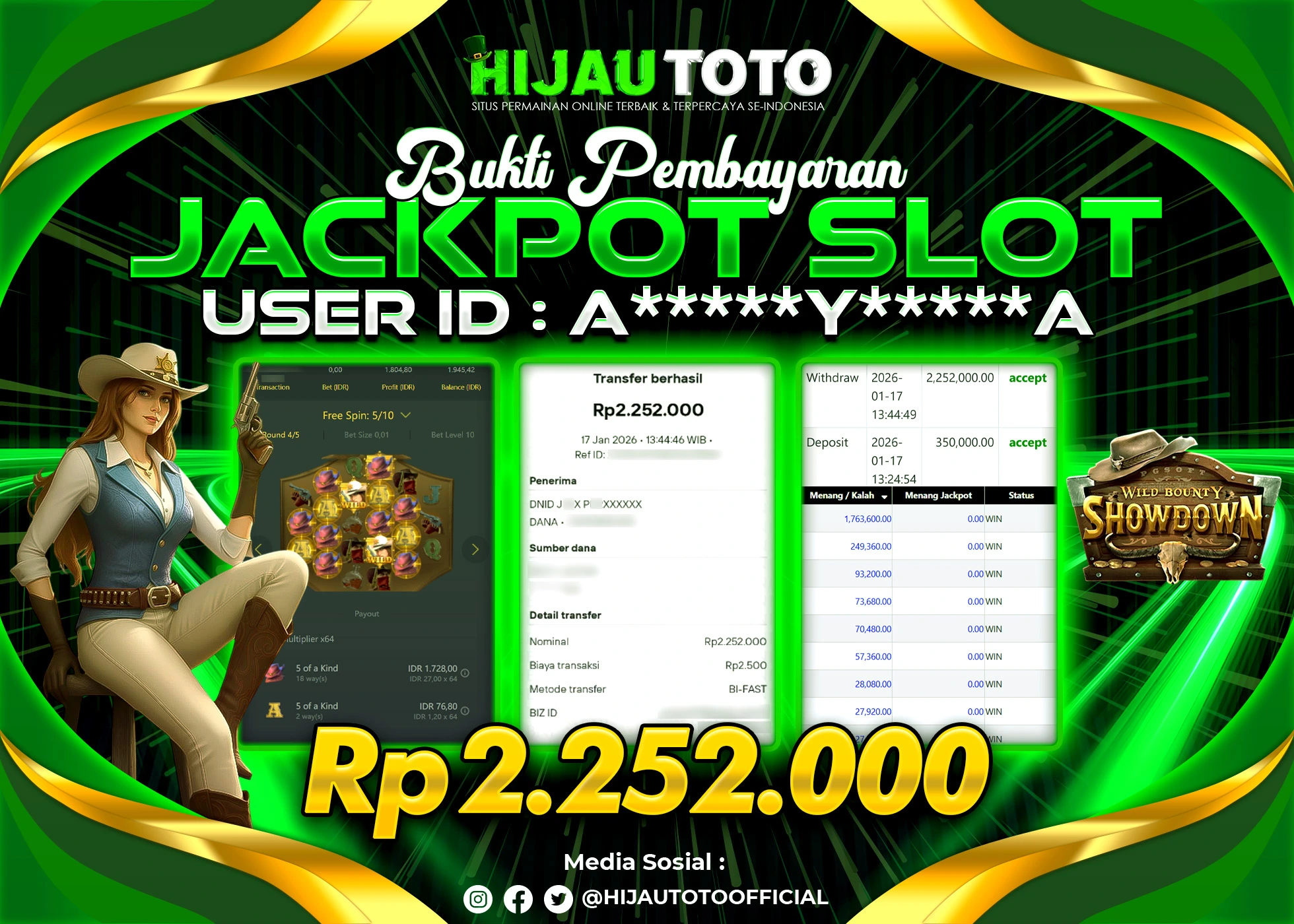 Selamat Kepada Member HIJAUTOTO A***********A Telah Jackpot Di SLOT WILD BOUNTY SHOWDOWN