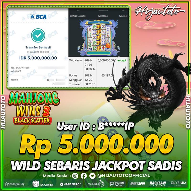 Selamat Kepada Member HIJAUTOTO B*****IP Telah Jackpot Di SLOT MAHJONG WINS 3 BLACK SCATTER