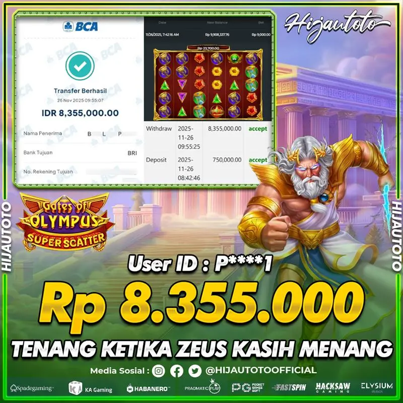 Karena berhasil memenangkan Rp.Rp.3.000.000 dari permainan seru SLOT GATES OF OLYMPUS 1000 di HIJAUTOTO! πŸ’°πŸ’Έ
