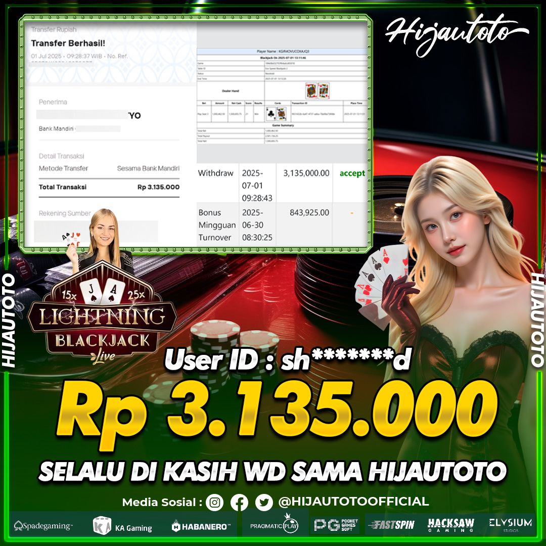 Nikmati pengalaman bermain casino langsung dari dealer profesional dalam fitur Live Casino HIJAUTOTO. Bermain blackjack, roulette, baccarat, dan permainan casino klasik lainnya secara real-time dengan suasana yang autentik dan interaktif.
