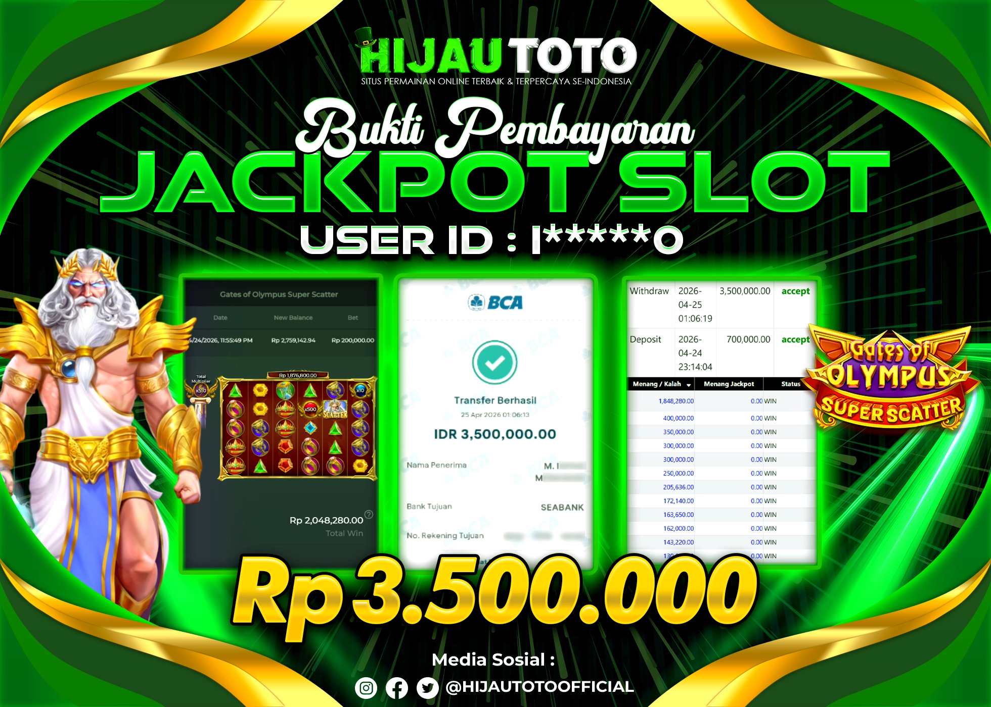 Selamat datang di HIJAUTOTO, tempatnya seru-seruan dan cuan besar! Mulai main cukup dengan modal Rp5.000 aja, taruhan super murah dari Rp100 perak! Mau main slot yang penuh warna? Atau togel dari 20 pasaran paling hits? Atau mungkin tembak ikan yang bikin deg-degan? Tenang, ada juga taruhan bola, sabung ayam, dan live casino yang bikin suasana makin hidup! Daftar sekarang dan dapetin bonus new member 100% langsung, biar modalmu makin tebal. Deposit gampang banget, bisa pakai QRIS, dan kalau butuh bantuan, customer service kita siap 24 jam nonstop. Jadi, tunggu apa lagi? Yuk, gabung dan bawa pulang kemenangannya cuma di HIJAUTOTO!