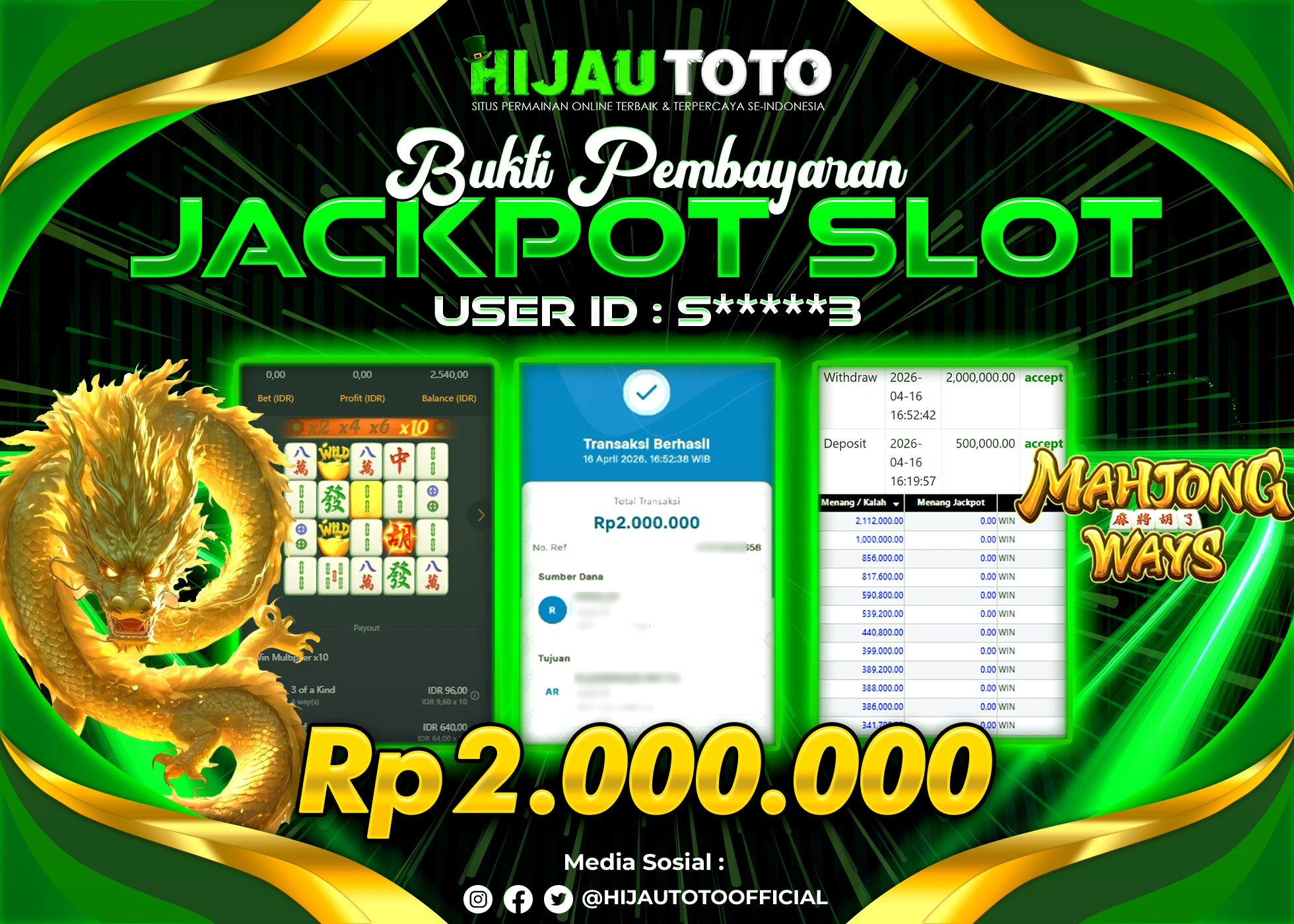 Bergabung dengan HIJAUTOTO sangat mudah dan cepat. Cukup lakukan pendaftaran dengan data lengkap, lakukan deposit minimal Rp5.000 melalui berbagai metode termasuk QRIS, dan mulai bertaruh dengan minimal taruhan Rp100. Dapatkan juga bonus new member 100% untuk modal bermain lebih besar.