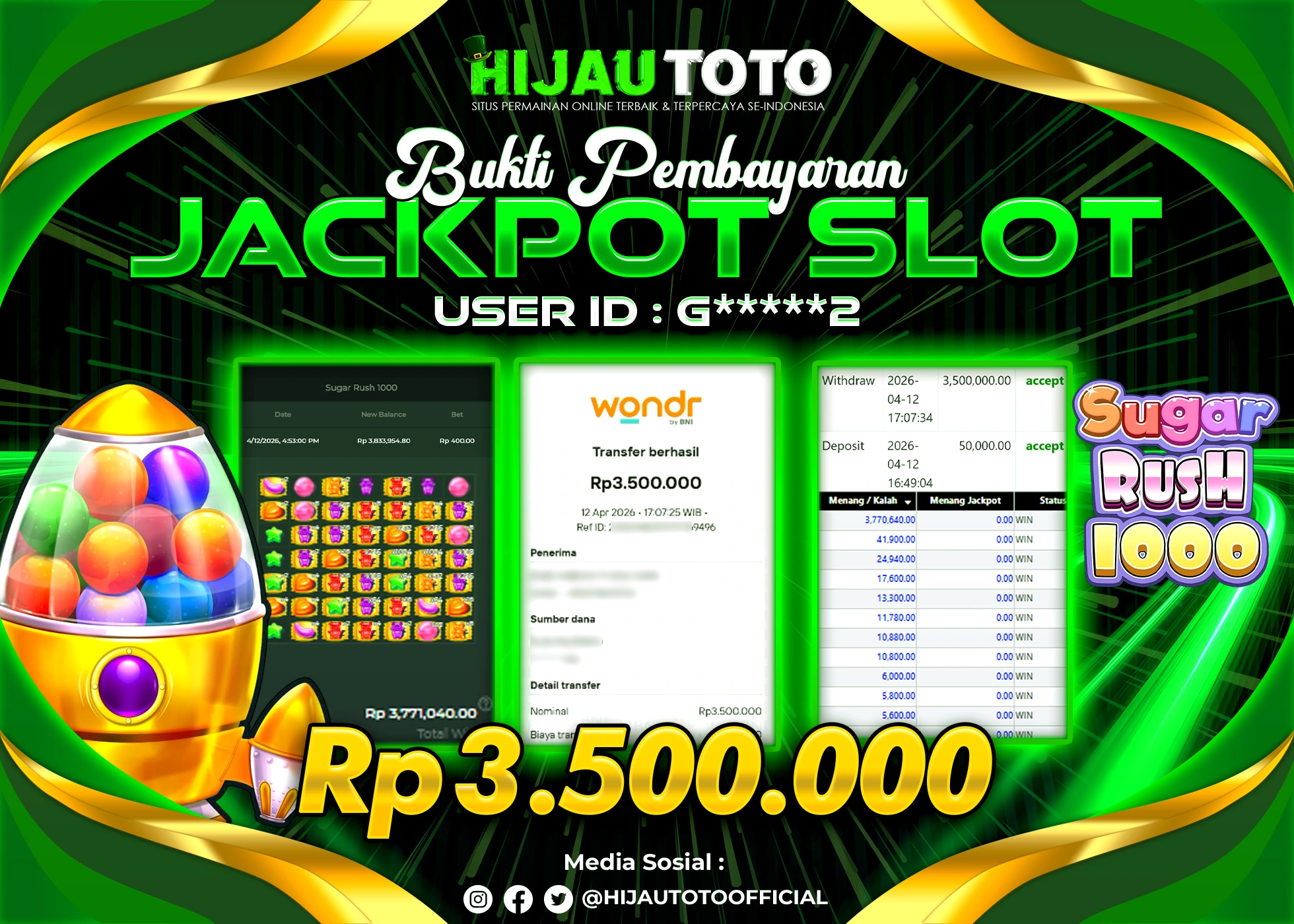 Selamat datang di HIJAUTOTO, tempatnya seru-seruan dan cuan besar! Mulai main cukup dengan modal Rp5.000 aja, taruhan super murah dari Rp100 perak! Mau main slot yang penuh warna? Atau togel dari 20 pasaran paling hits? Atau mungkin tembak ikan yang bikin deg-degan? Tenang, ada juga taruhan bola, sabung ayam, dan live casino yang bikin suasana makin hidup! Daftar sekarang dan dapetin bonus new member 100% langsung, biar modalmu makin tebal. Deposit gampang banget, bisa pakai QRIS, dan kalau butuh bantuan, customer service kita siap 24 jam nonstop. Jadi, tunggu apa lagi? Yuk, gabung dan bawa pulang kemenangannya cuma di HIJAUTOTO!