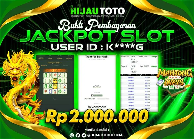 Selamat datang di HIJAUTOTO, tempatnya seru-seruan dan cuan besar! Mulai main cukup dengan modal Rp5.000 aja, taruhan super murah dari Rp100 perak! Mau main slot yang penuh warna? Atau togel dari 20 pasaran paling hits? Atau mungkin tembak ikan yang bikin deg-degan? Tenang, ada juga taruhan bola, sabung ayam, dan live casino yang bikin suasana makin hidup! Daftar sekarang dan dapetin bonus new member 100% langsung, biar modalmu makin tebal. Deposit gampang banget, bisa pakai QRIS, dan kalau butuh bantuan, customer service kita siap 24 jam nonstop. Jadi, tunggu apa lagi? Yuk, gabung dan bawa pulang kemenangannya cuma di HIJAUTOTO!