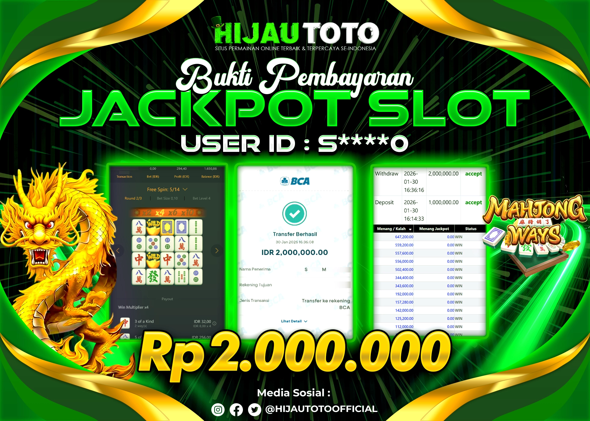 Bergabung dengan HIJAUTOTO sangat mudah dan cepat. Cukup lakukan pendaftaran dengan data lengkap, lakukan deposit minimal Rp5.000 melalui berbagai metode termasuk QRIS, dan mulai bertaruh dengan minimal taruhan Rp100. Dapatkan juga bonus new member 100% untuk modal bermain lebih besar.