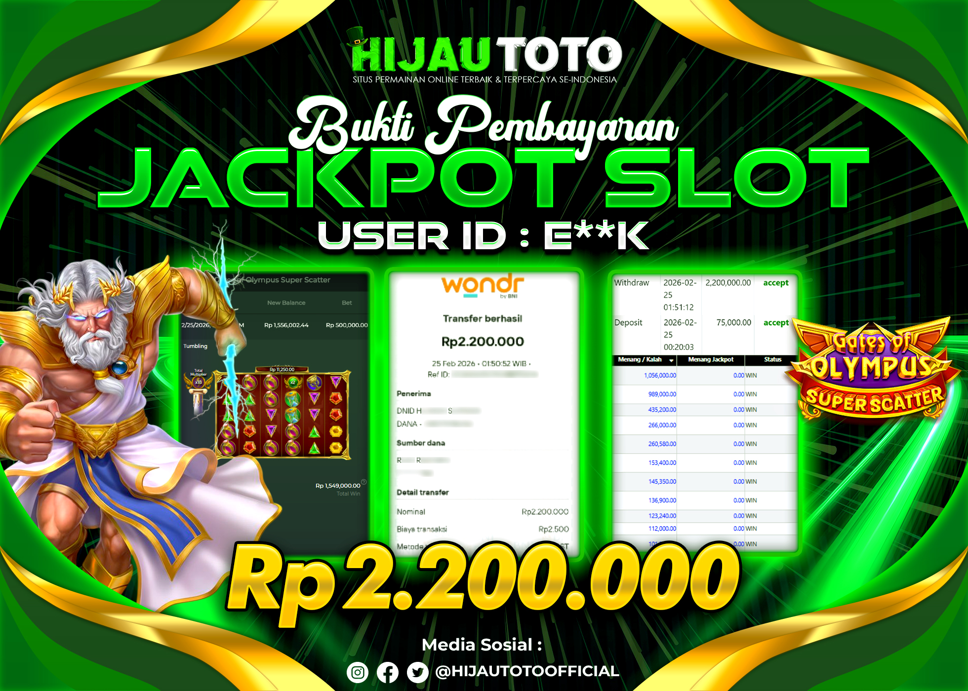Selamat datang di HIJAUTOTO, tempatnya seru-seruan dan cuan besar! Mulai main cukup dengan modal Rp5.000 aja, taruhan super murah dari Rp100 perak! Mau main slot yang penuh warna? Atau togel dari 20 pasaran paling hits? Atau mungkin tembak ikan yang bikin deg-degan? Tenang, ada juga taruhan bola, sabung ayam, dan live casino yang bikin suasana makin hidup! Daftar sekarang dan dapetin bonus new member 100% langsung, biar modalmu makin tebal. Deposit gampang banget, bisa pakai QRIS, dan kalau butuh bantuan, customer service kita siap 24 jam nonstop. Jadi, tunggu apa lagi? Yuk, gabung dan bawa pulang kemenangannya cuma di HIJAUTOTO!