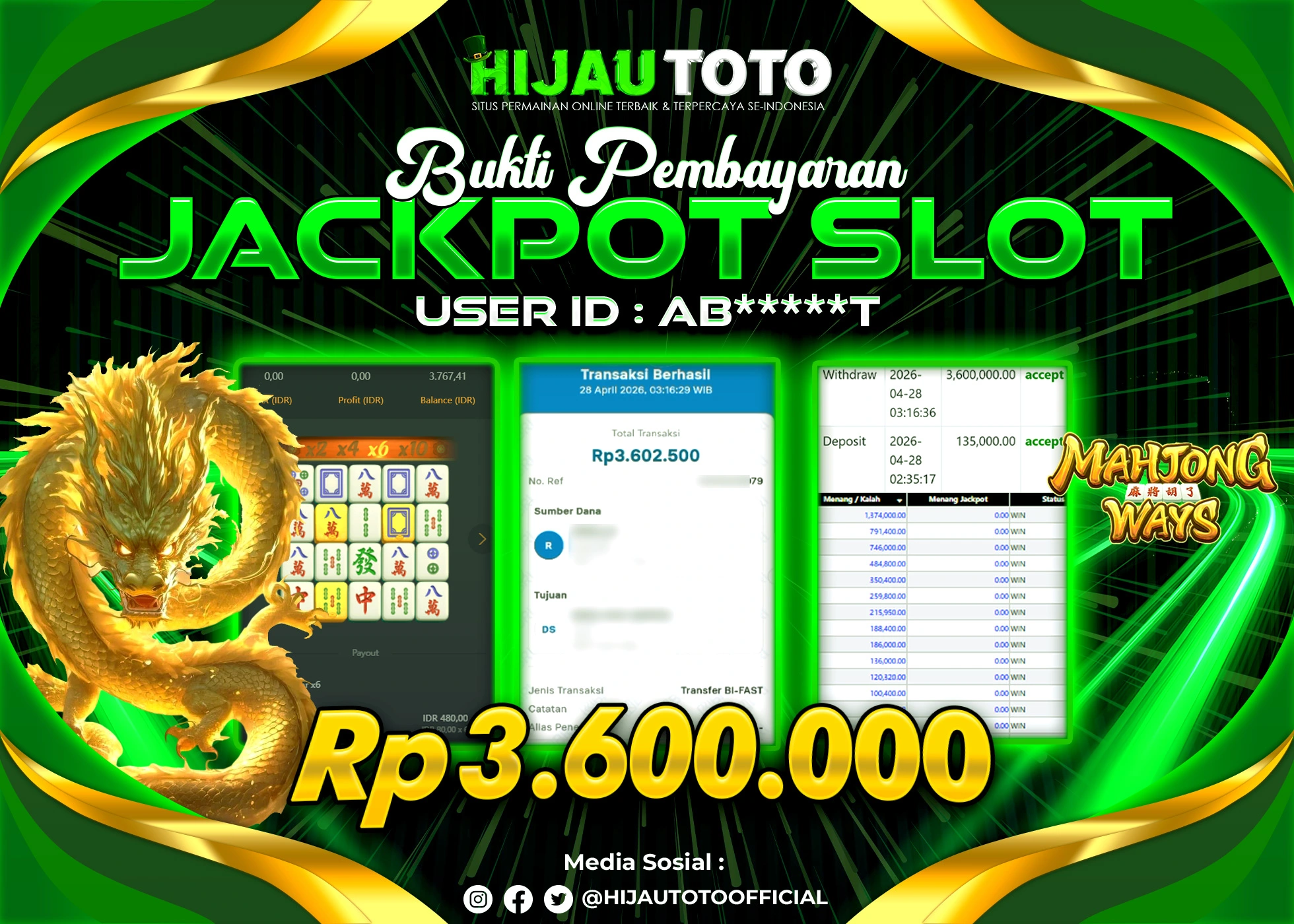 Bergabung dengan HIJAUTOTO sangat mudah dan cepat. Cukup lakukan pendaftaran dengan data lengkap, lakukan deposit minimal Rp5.000 melalui berbagai metode termasuk QRIS, dan mulai bertaruh dengan minimal taruhan Rp100. Dapatkan juga bonus new member 100% untuk modal bermain lebih besar.