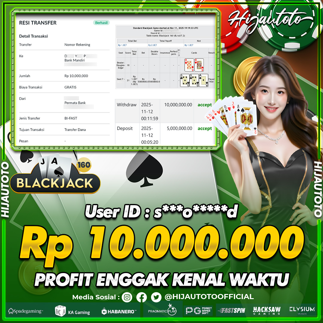 Selamat datang di HIJAUTOTO, tempatnya seru-seruan dan cuan besar! Mulai main cukup dengan modal Rp5.000 aja, taruhan super murah dari Rp100 perak! Mau main slot yang penuh warna? Atau togel dari 20 pasaran paling hits? Atau mungkin tembak ikan yang bikin deg-degan? Tenang, ada juga taruhan bola, sabung ayam, dan live casino yang bikin suasana makin hidup! Daftar sekarang dan dapetin bonus new member 100% langsung, biar modalmu makin tebal. Deposit gampang banget, bisa pakai QRIS, dan kalau butuh bantuan, customer service kita siap 24 jam nonstop. Jadi, tunggu apa lagi? Yuk, gabung dan bawa pulang kemenangannya cuma di HIJAUTOTO!