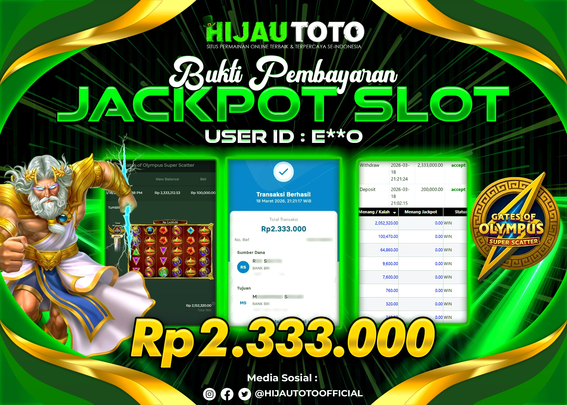 Selamat datang di HIJAUTOTO, tempatnya seru-seruan dan cuan besar! Mulai main cukup dengan modal Rp5.000 aja, taruhan super murah dari Rp100 perak! Mau main slot yang penuh warna? Atau togel dari 20 pasaran paling hits? Atau mungkin tembak ikan yang bikin deg-degan? Tenang, ada juga taruhan bola, sabung ayam, dan live casino yang bikin suasana makin hidup! Daftar sekarang dan dapetin bonus new member 100% langsung, biar modalmu makin tebal. Deposit gampang banget, bisa pakai QRIS, dan kalau butuh bantuan, customer service kita siap 24 jam nonstop. Jadi, tunggu apa lagi? Yuk, gabung dan bawa pulang kemenangannya cuma di HIJAUTOTO!