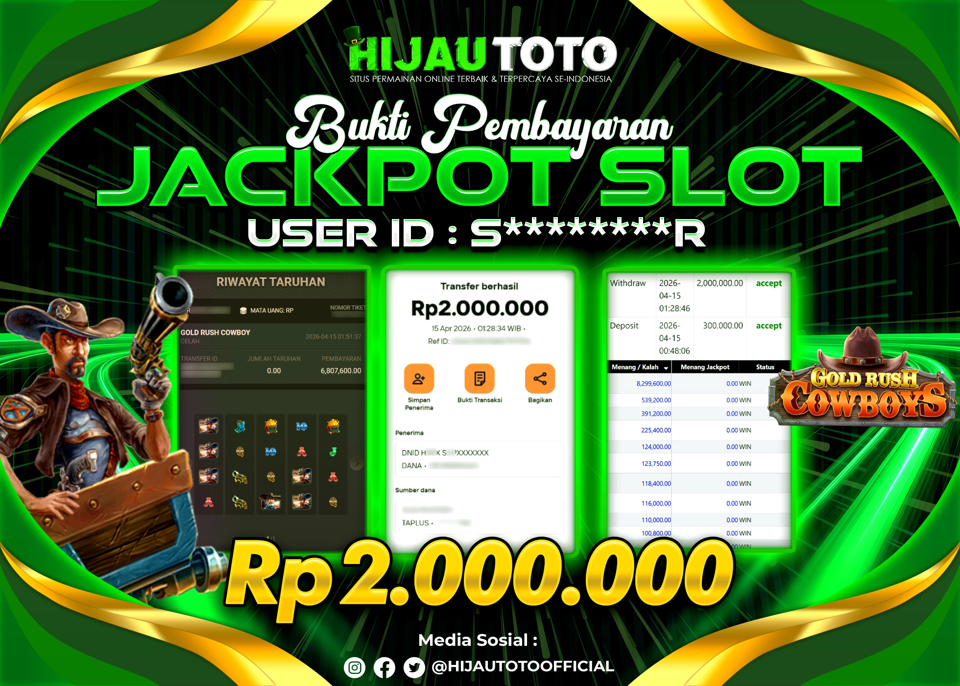 β¨ JACKPOT DI SLOT GOLD RUSH COWBOYS β¨