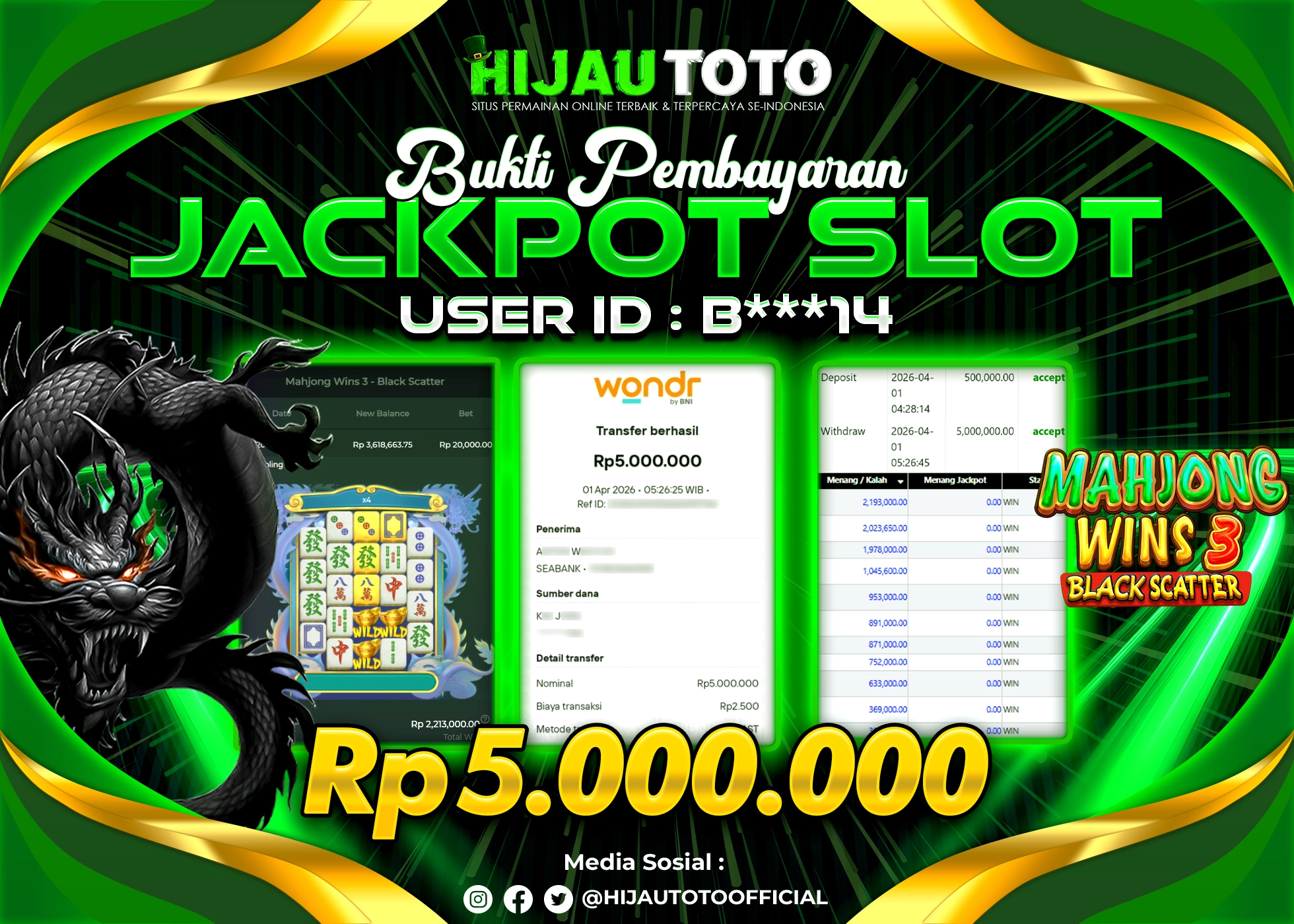 Bergabung dengan HIJAUTOTO sangat mudah dan cepat. Cukup lakukan pendaftaran dengan data lengkap, lakukan deposit minimal Rp5.000 melalui berbagai metode termasuk QRIS, dan mulai bertaruh dengan minimal taruhan Rp100. Dapatkan juga bonus new member 100% untuk modal bermain lebih besar.