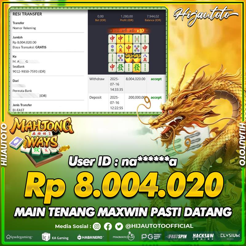 Selamat datang di HIJAUTOTO, tempatnya seru-seruan dan cuan besar! Mulai main cukup dengan modal Rp5.000 aja, taruhan super murah dari Rp100 perak! Mau main slot yang penuh warna? Atau togel dari 20 pasaran paling hits? Atau mungkin tembak ikan yang bikin deg-degan? Tenang, ada juga taruhan bola, sabung ayam, dan live casino yang bikin suasana makin hidup! Daftar sekarang dan dapetin bonus new member 100% langsung, biar modalmu makin tebal. Deposit gampang banget, bisa pakai QRIS, dan kalau butuh bantuan, customer service kita siap 24 jam nonstop. Jadi, tunggu apa lagi? Yuk, gabung dan bawa pulang kemenangannya cuma di HIJAUTOTO!