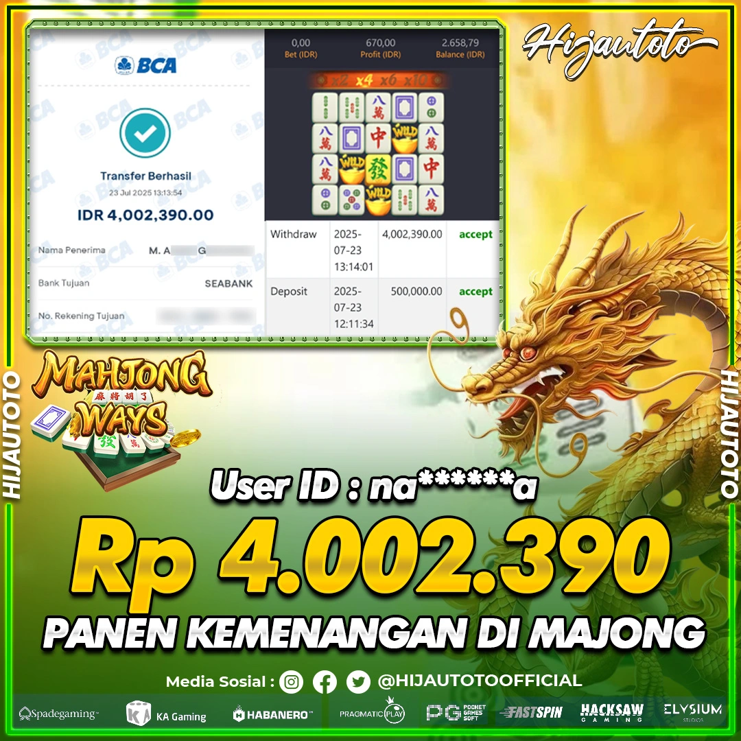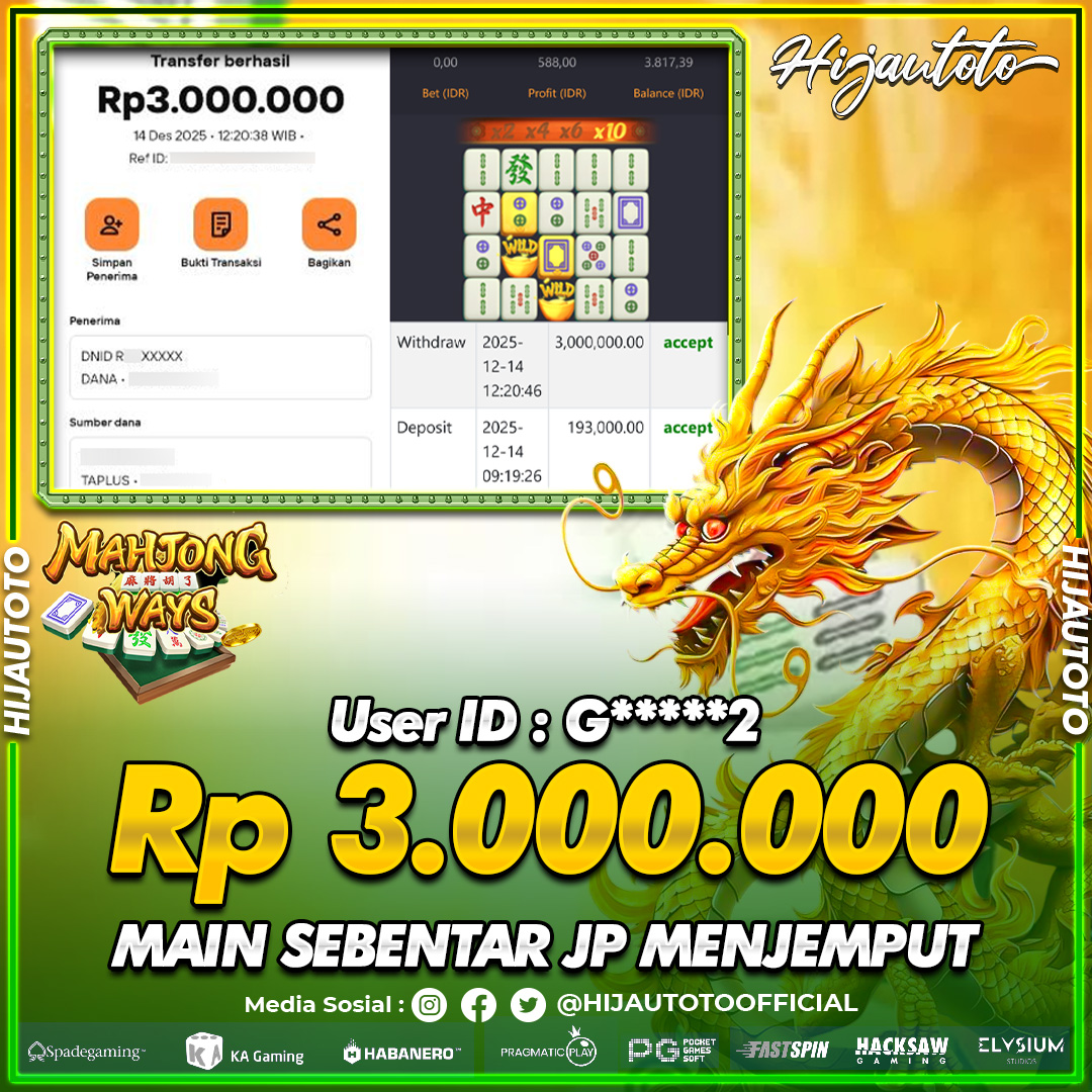 Cuma di HIJAUTOTO, tempat paling AMAN, CEPAT, & TERPERCAYA buat pecinta game SLOT MAHJONG WAYS 2!