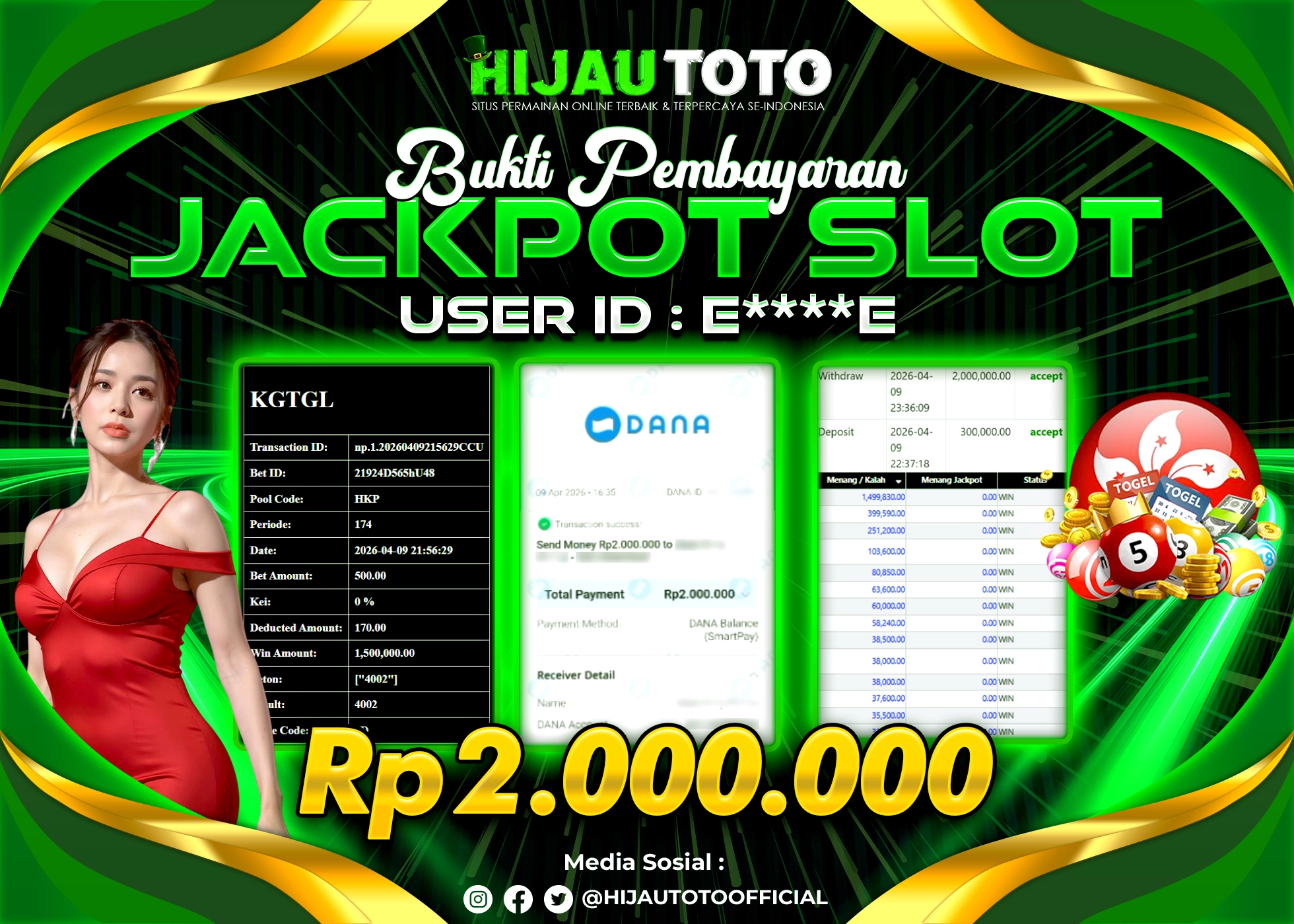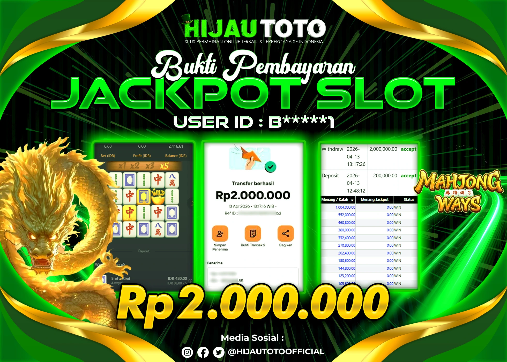 Selamat datang di HIJAUTOTO, tempatnya seru-seruan dan cuan besar! Mulai main cukup dengan modal Rp5.000 aja, taruhan super murah dari Rp100 perak! Mau main slot yang penuh warna? Atau togel dari 20 pasaran paling hits? Atau mungkin tembak ikan yang bikin deg-degan? Tenang, ada juga taruhan bola, sabung ayam, dan live casino yang bikin suasana makin hidup! Daftar sekarang dan dapetin bonus new member 100% langsung, biar modalmu makin tebal. Deposit gampang banget, bisa pakai QRIS, dan kalau butuh bantuan, customer service kita siap 24 jam nonstop. Jadi, tunggu apa lagi? Yuk, gabung dan bawa pulang kemenangannya cuma di HIJAUTOTO!