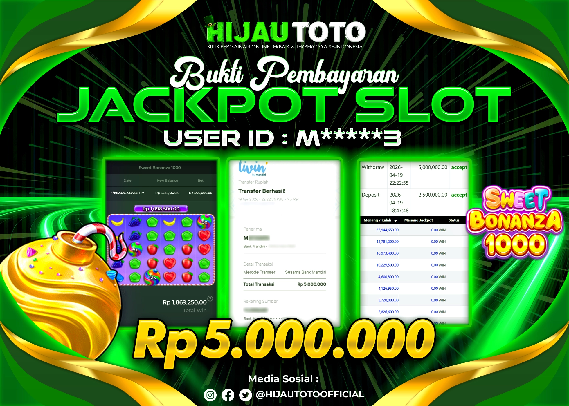 Karena berhasil memenangkan Rp.Rp.6.074.000 dari permainan seru SLOT SWEET BONANZA 1000 di HIJAUTOTO! πŸ’°πŸ’Έ