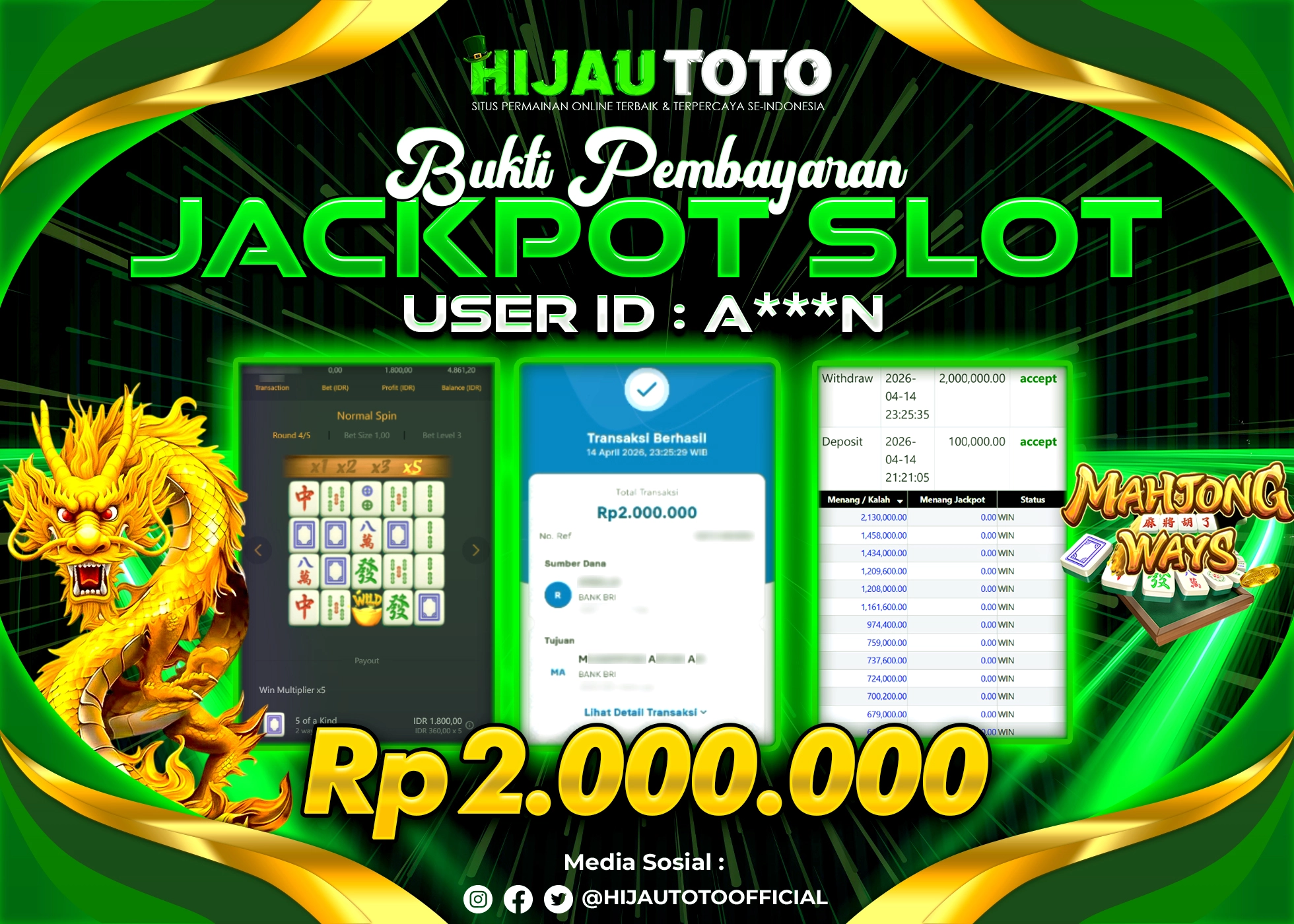 Selamat datang di HIJAUTOTO, tempatnya seru-seruan dan cuan besar! Mulai main cukup dengan modal Rp5.000 aja, taruhan super murah dari Rp100 perak! Mau main slot yang penuh warna? Atau togel dari 20 pasaran paling hits? Atau mungkin tembak ikan yang bikin deg-degan? Tenang, ada juga taruhan bola, sabung ayam, dan live casino yang bikin suasana makin hidup! Daftar sekarang dan dapetin bonus new member 100% langsung, biar modalmu makin tebal. Deposit gampang banget, bisa pakai QRIS, dan kalau butuh bantuan, customer service kita siap 24 jam nonstop. Jadi, tunggu apa lagi? Yuk, gabung dan bawa pulang kemenangannya cuma di HIJAUTOTO!