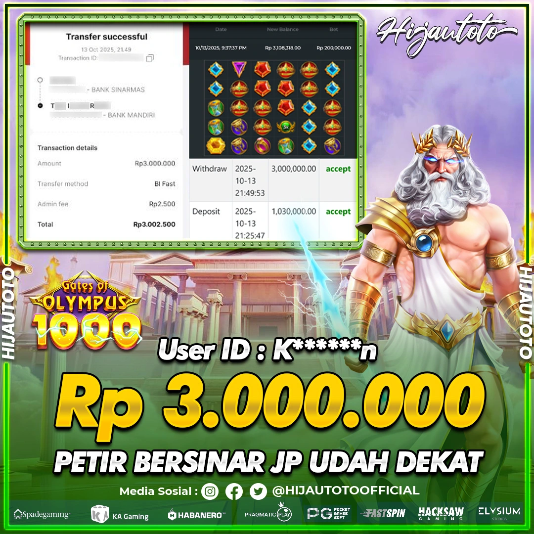 β¨ JACKPOT DI SLOT GATES OF OLYMPUS 1000 β¨