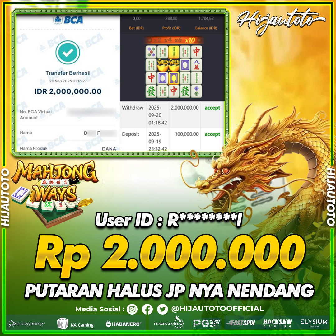 Selamat datang di HIJAUTOTO, tempatnya seru-seruan dan cuan besar! Mulai main cukup dengan modal Rp5.000 aja, taruhan super murah dari Rp100 perak! Mau main slot yang penuh warna? Atau togel dari 20 pasaran paling hits? Atau mungkin tembak ikan yang bikin deg-degan? Tenang, ada juga taruhan bola, sabung ayam, dan live casino yang bikin suasana makin hidup! Daftar sekarang dan dapetin bonus new member 100% langsung, biar modalmu makin tebal. Deposit gampang banget, bisa pakai QRIS, dan kalau butuh bantuan, customer service kita siap 24 jam nonstop. Jadi, tunggu apa lagi? Yuk, gabung dan bawa pulang kemenangannya cuma di HIJAUTOTO!