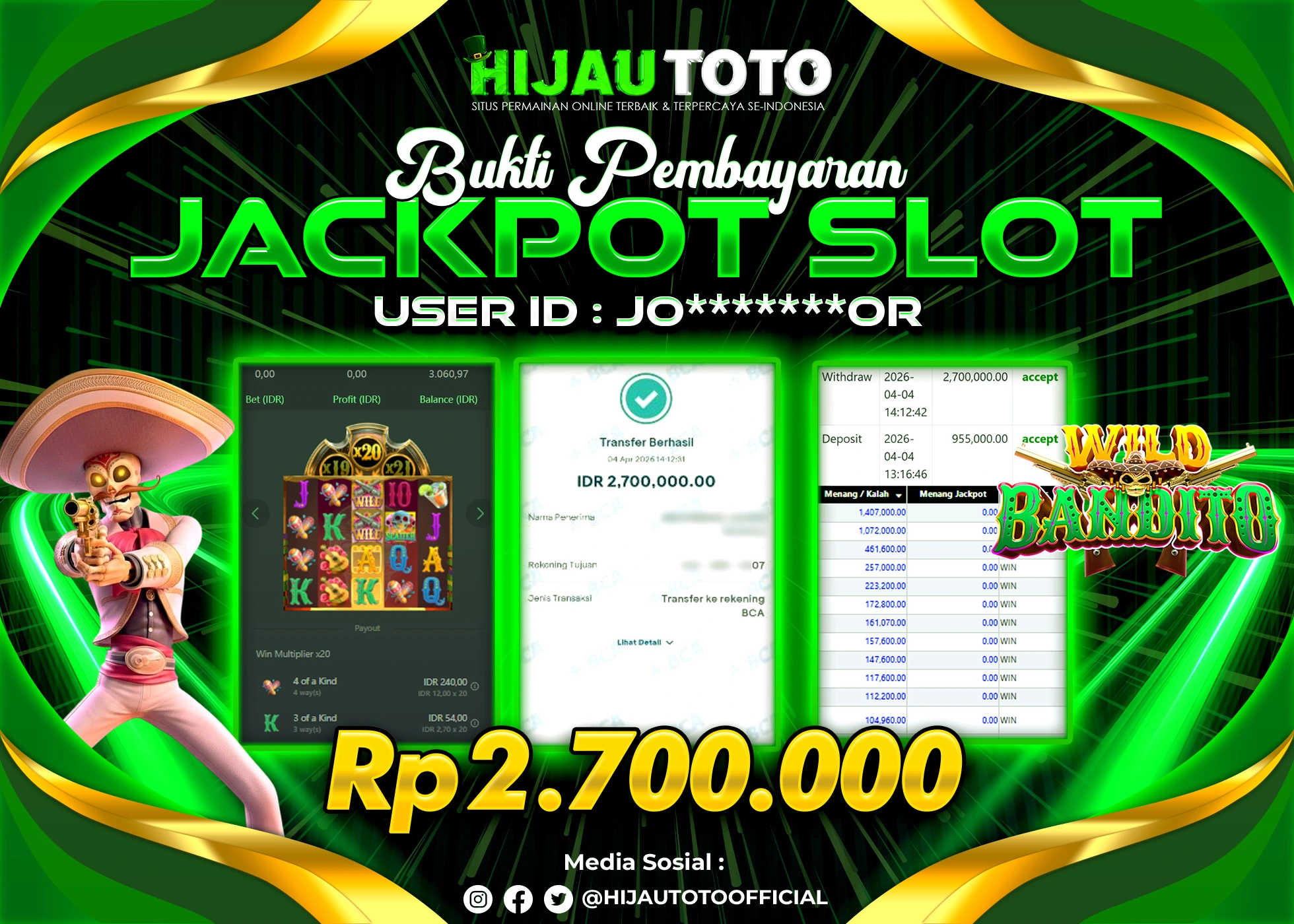 β¨ JACKPOT DI SLOT WILD BANDITO β¨