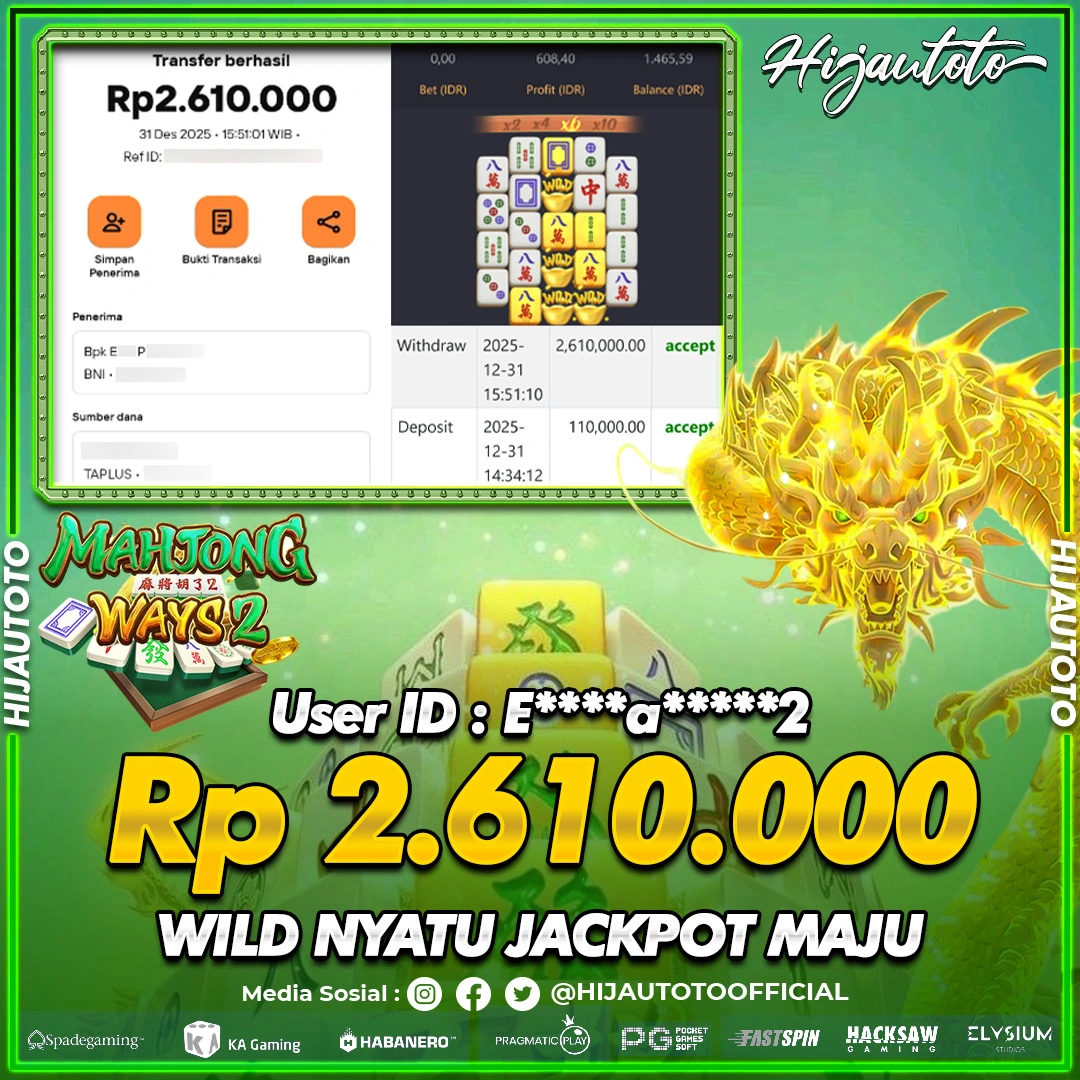 Selamat datang di HIJAUTOTO, tempatnya seru-seruan dan cuan besar! Mulai main cukup dengan modal Rp5.000 aja, taruhan super murah dari Rp100 perak! Mau main slot yang penuh warna? Atau togel dari 20 pasaran paling hits? Atau mungkin tembak ikan yang bikin deg-degan? Tenang, ada juga taruhan bola, sabung ayam, dan live casino yang bikin suasana makin hidup! Daftar sekarang dan dapetin bonus new member 100% langsung, biar modalmu makin tebal. Deposit gampang banget, bisa pakai QRIS, dan kalau butuh bantuan, customer service kita siap 24 jam nonstop. Jadi, tunggu apa lagi? Yuk, gabung dan bawa pulang kemenangannya cuma di HIJAUTOTO!