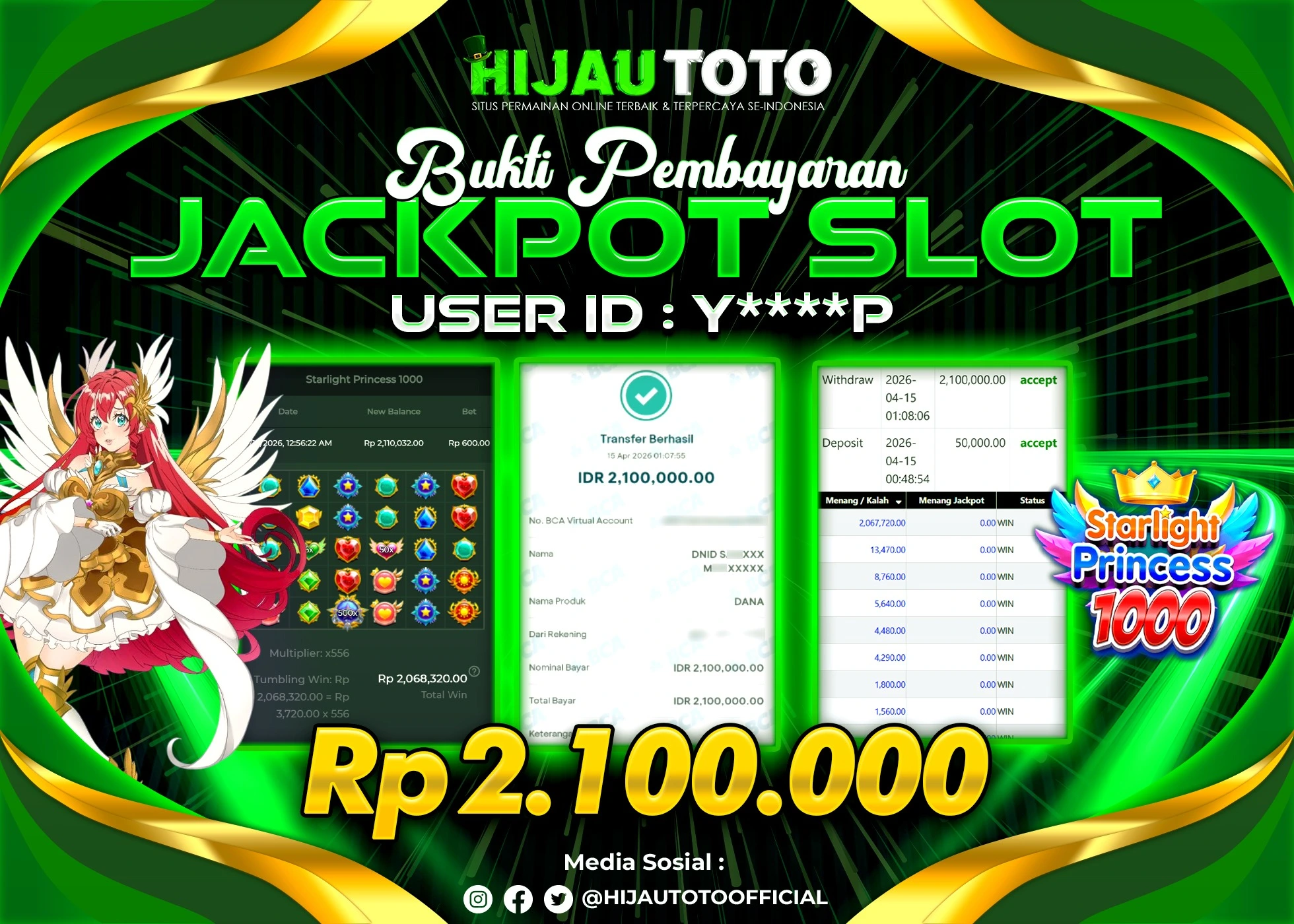 Selamat Kepada Member HIJAUTOTO Y****P Telah Jackpot Di SLOT STARLIGHT PRINCESS 1000