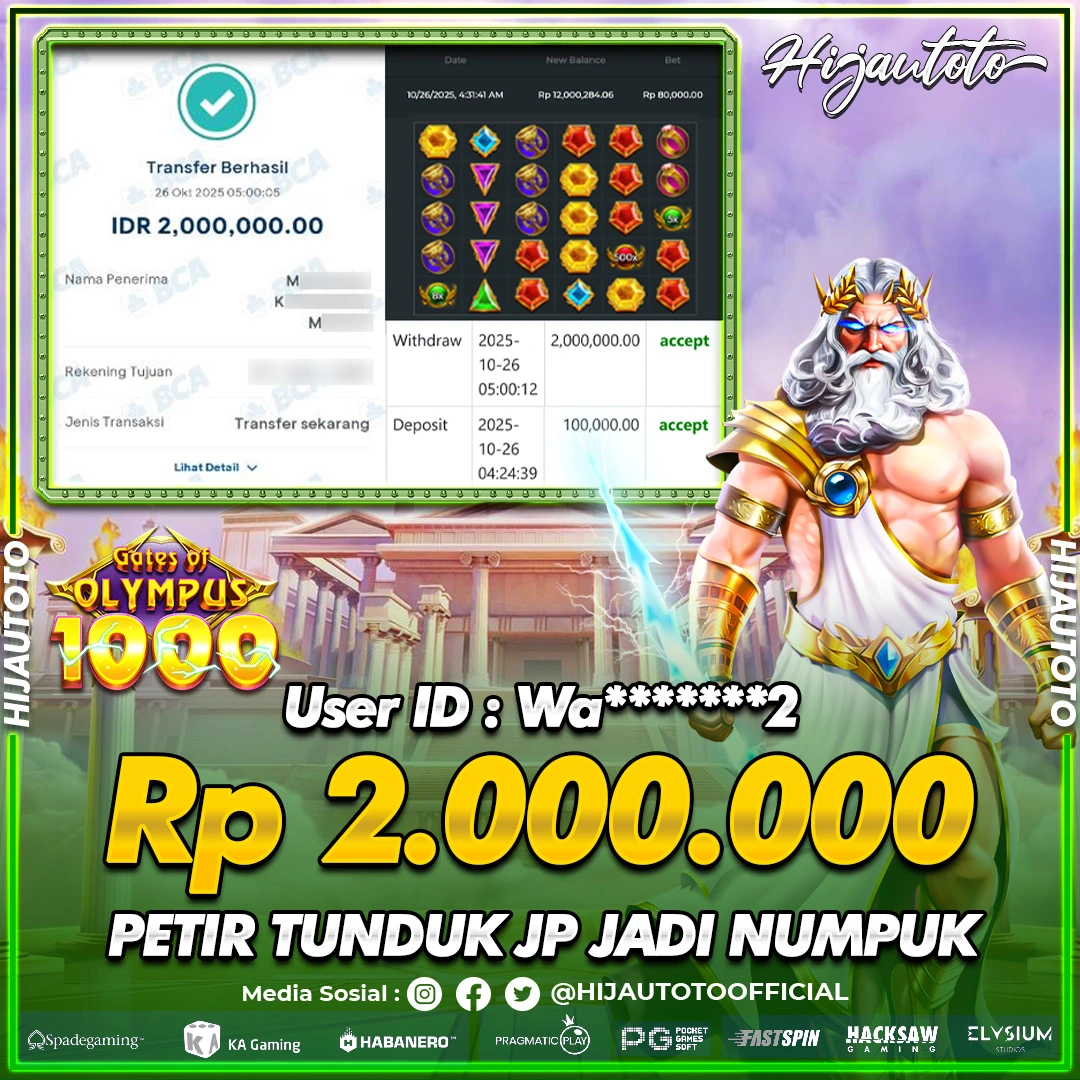 Karena berhasil memenangkan Rp.Rp.2.000.000 dari permainan seru SLOT GATES OF OLYMPUS SUPER SCATTER di HIJAUTOTO! πŸ’°πŸ’Έ