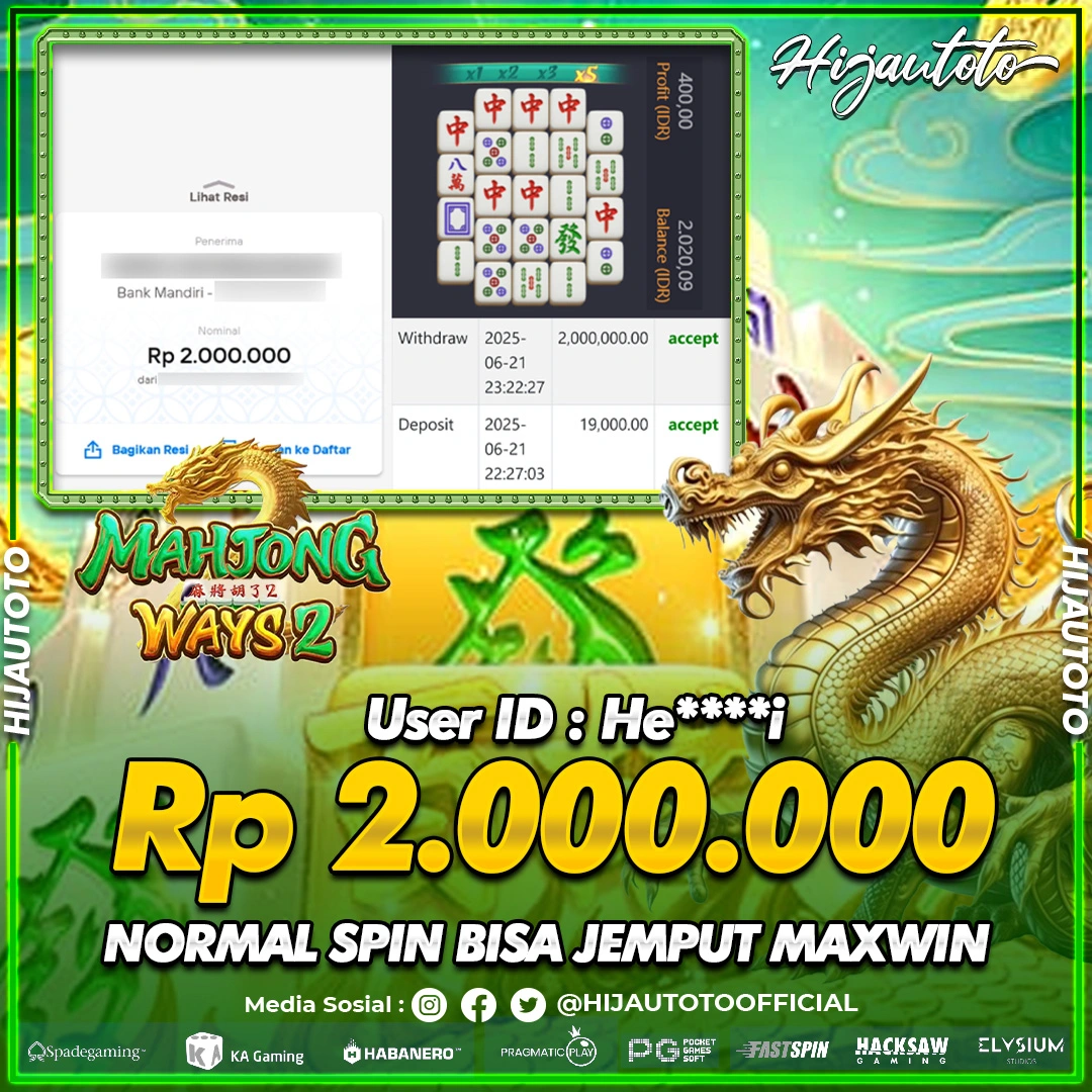 Selamat datang di HIJAUTOTO, tempatnya seru-seruan dan cuan besar! Mulai main cukup dengan modal Rp5.000 aja, taruhan super murah dari Rp100 perak! Mau main slot yang penuh warna? Atau togel dari 20 pasaran paling hits? Atau mungkin tembak ikan yang bikin deg-degan? Tenang, ada juga taruhan bola, sabung ayam, dan live casino yang bikin suasana makin hidup! Daftar sekarang dan dapetin bonus new member 100% langsung, biar modalmu makin tebal. Deposit gampang banget, bisa pakai QRIS, dan kalau butuh bantuan, customer service kita siap 24 jam nonstop. Jadi, tunggu apa lagi? Yuk, gabung dan bawa pulang kemenangannya cuma di HIJAUTOTO!