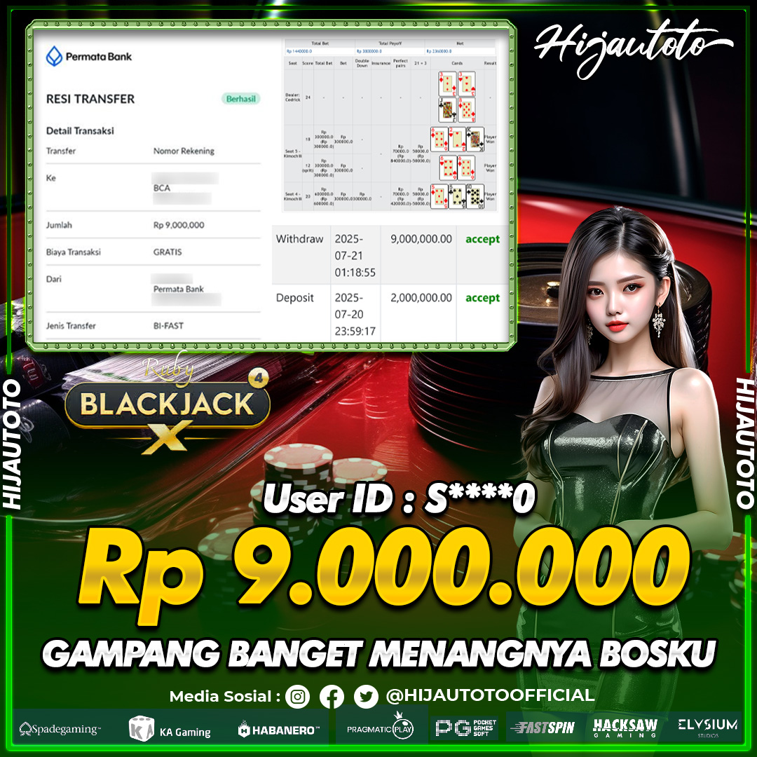 Selamat Kepada Member HIJAUTOTO S****0 Telah Jackpot Di LIVE CASINO RUBY BLACKJACK