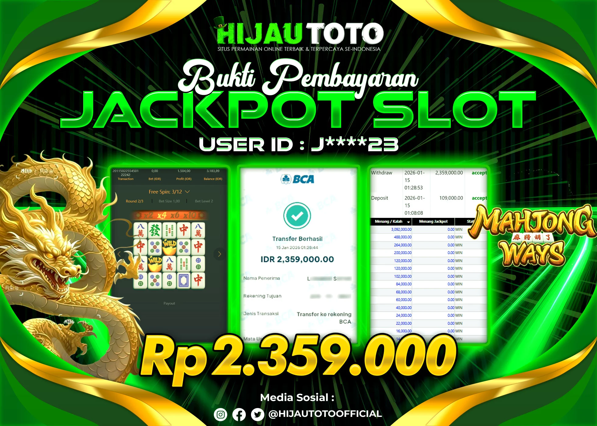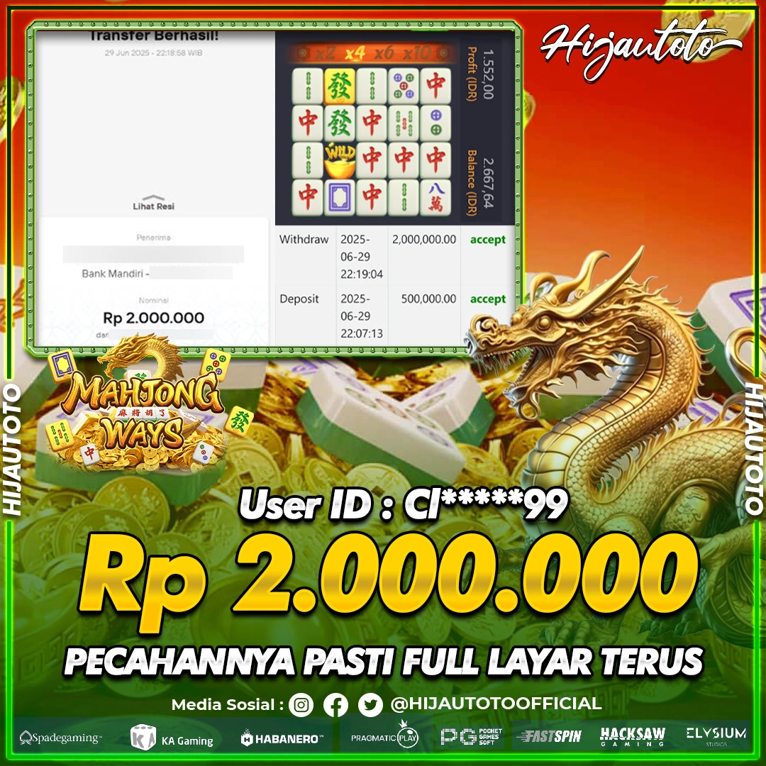Karena berhasil memenangkan Rp.Rp.3.805.000 dari permainan seru SLOT MAHJONG WAYS di HIJAUTOTO! πŸ’°πŸ’Έ