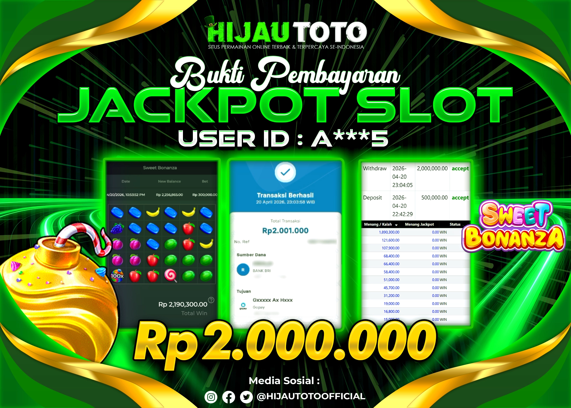Selamat datang di HIJAUTOTO, tempatnya seru-seruan dan cuan besar! Mulai main cukup dengan modal Rp5.000 aja, taruhan super murah dari Rp100 perak! Mau main slot yang penuh warna? Atau togel dari 20 pasaran paling hits? Atau mungkin tembak ikan yang bikin deg-degan? Tenang, ada juga taruhan bola, sabung ayam, dan live casino yang bikin suasana makin hidup! Daftar sekarang dan dapetin bonus new member 100% langsung, biar modalmu makin tebal. Deposit gampang banget, bisa pakai QRIS, dan kalau butuh bantuan, customer service kita siap 24 jam nonstop. Jadi, tunggu apa lagi? Yuk, gabung dan bawa pulang kemenangannya cuma di HIJAUTOTO!