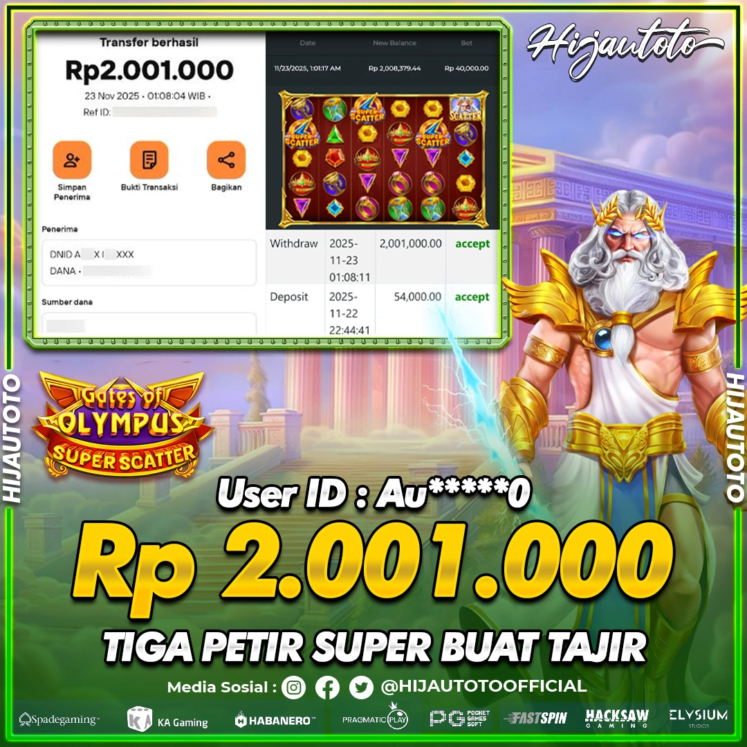 Selamat Kepada Member HIJAUTOTO AU*****0 Telah Jackpot Di SLOT GATES OF 0LYMPUS SUPER SCATTER