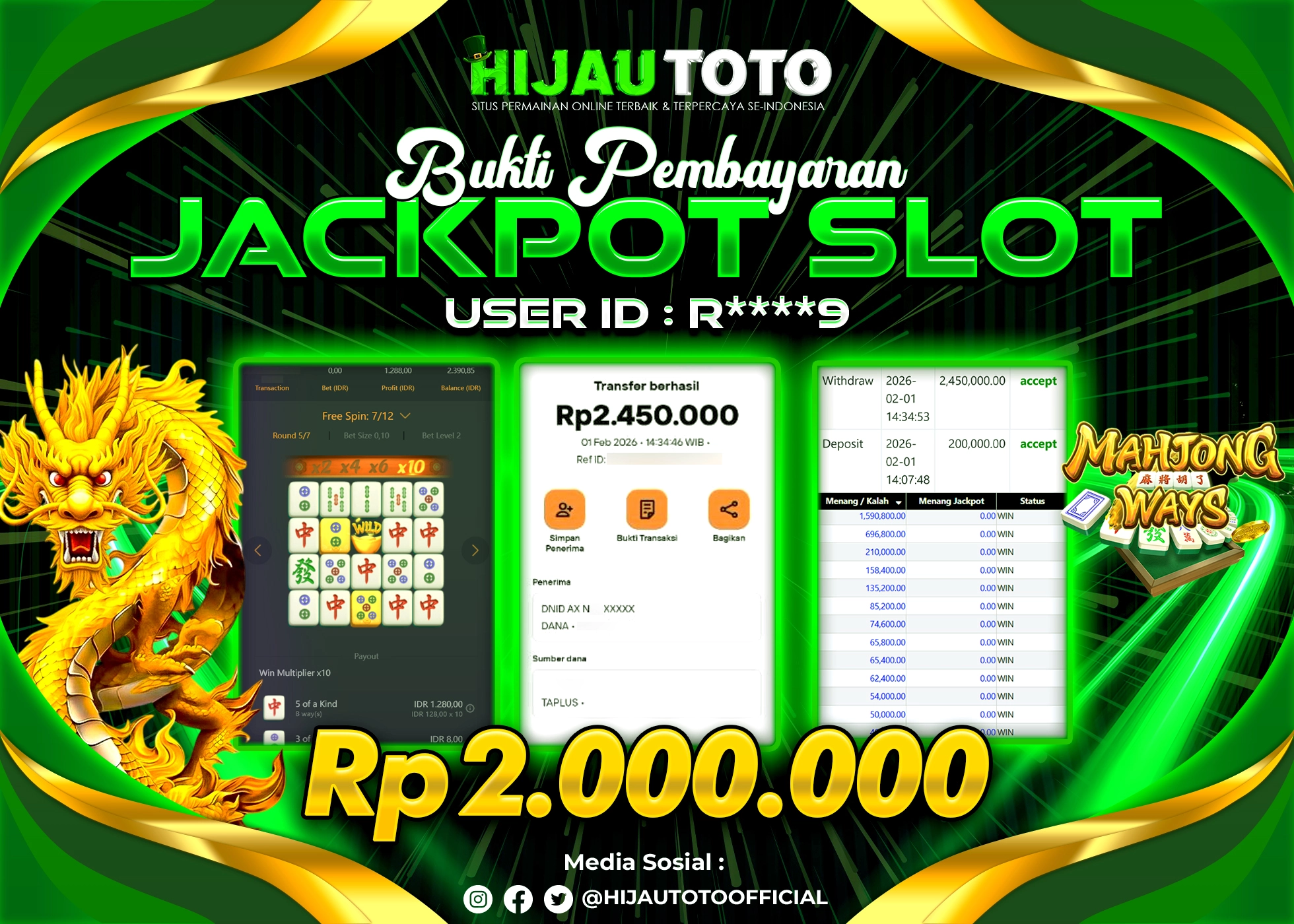 Selamat datang di HIJAUTOTO, tempatnya seru-seruan dan cuan besar! Mulai main cukup dengan modal Rp5.000 aja, taruhan super murah dari Rp100 perak! Mau main slot yang penuh warna? Atau togel dari 20 pasaran paling hits? Atau mungkin tembak ikan yang bikin deg-degan? Tenang, ada juga taruhan bola, sabung ayam, dan live casino yang bikin suasana makin hidup! Daftar sekarang dan dapetin bonus new member 100% langsung, biar modalmu makin tebal. Deposit gampang banget, bisa pakai QRIS, dan kalau butuh bantuan, customer service kita siap 24 jam nonstop. Jadi, tunggu apa lagi? Yuk, gabung dan bawa pulang kemenangannya cuma di HIJAUTOTO!