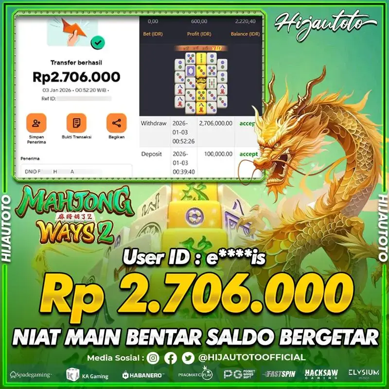 Selamat datang di HIJAUTOTO, tempatnya seru-seruan dan cuan besar! Mulai main cukup dengan modal Rp5.000 aja, taruhan super murah dari Rp100 perak! Mau main slot yang penuh warna? Atau togel dari 20 pasaran paling hits? Atau mungkin tembak ikan yang bikin deg-degan? Tenang, ada juga taruhan bola, sabung ayam, dan live casino yang bikin suasana makin hidup! Daftar sekarang dan dapetin bonus new member 100% langsung, biar modalmu makin tebal. Deposit gampang banget, bisa pakai QRIS, dan kalau butuh bantuan, customer service kita siap 24 jam nonstop. Jadi, tunggu apa lagi? Yuk, gabung dan bawa pulang kemenangannya cuma di HIJAUTOTO!