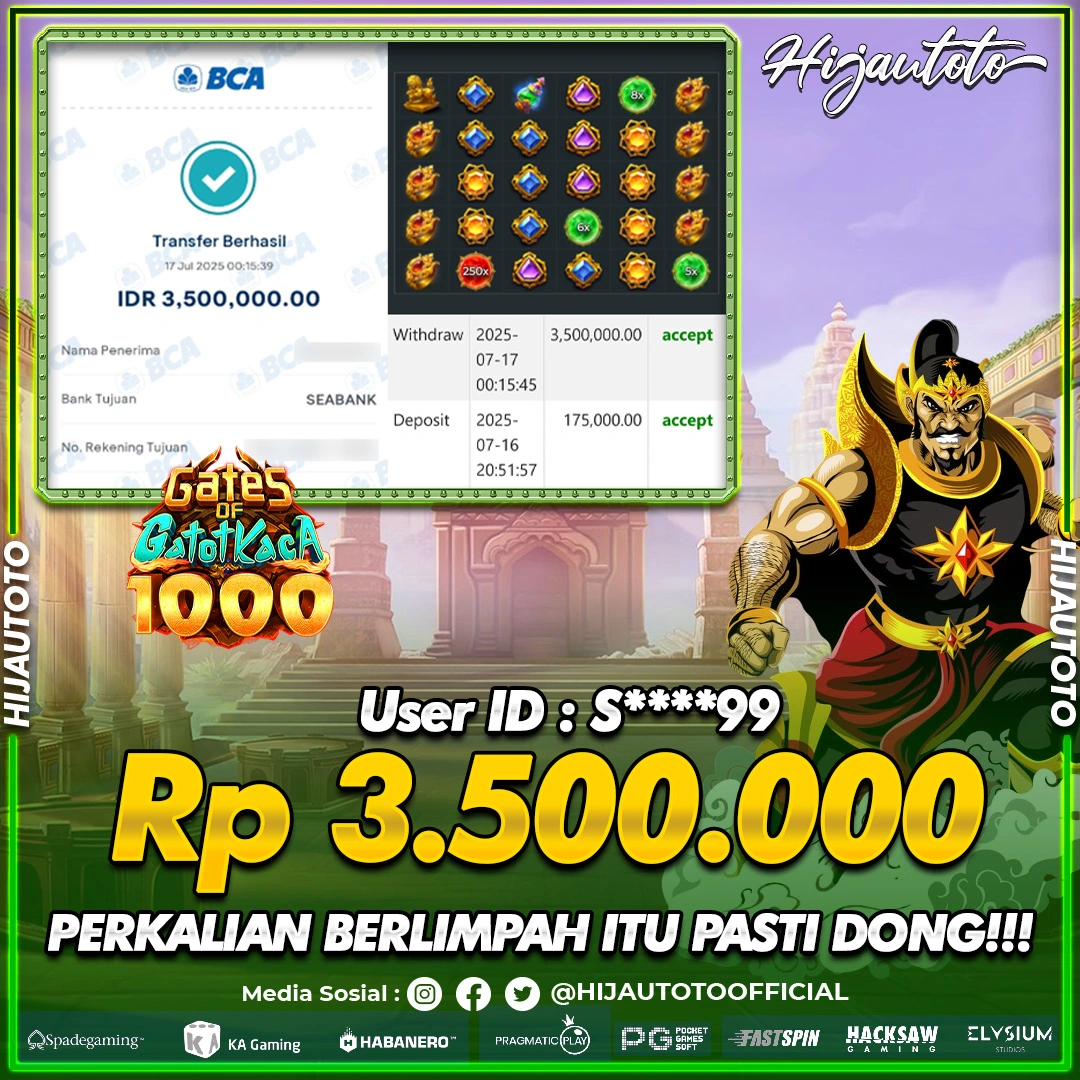 Selamat datang di HIJAUTOTO, tempatnya seru-seruan dan cuan besar! Mulai main cukup dengan modal Rp5.000 aja, taruhan super murah dari Rp100 perak! Mau main slot yang penuh warna? Atau togel dari 20 pasaran paling hits? Atau mungkin tembak ikan yang bikin deg-degan? Tenang, ada juga taruhan bola, sabung ayam, dan live casino yang bikin suasana makin hidup! Daftar sekarang dan dapetin bonus new member 100% langsung, biar modalmu makin tebal. Deposit gampang banget, bisa pakai QRIS, dan kalau butuh bantuan, customer service kita siap 24 jam nonstop. Jadi, tunggu apa lagi? Yuk, gabung dan bawa pulang kemenangannya cuma di HIJAUTOTO!