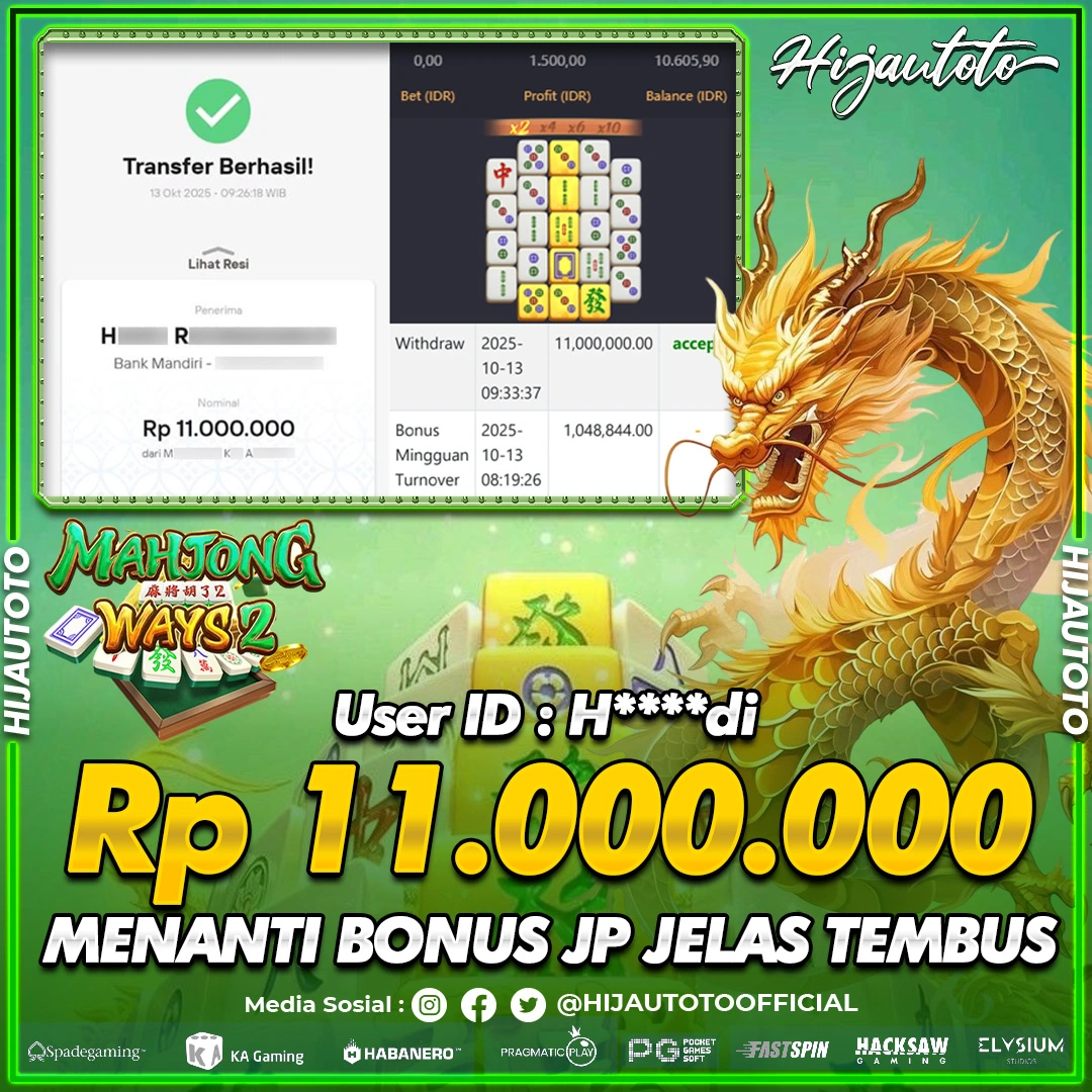 Selamat datang di HIJAUTOTO, tempatnya seru-seruan dan cuan besar! Mulai main cukup dengan modal Rp5.000 aja, taruhan super murah dari Rp100 perak! Mau main slot yang penuh warna? Atau togel dari 20 pasaran paling hits? Atau mungkin tembak ikan yang bikin deg-degan? Tenang, ada juga taruhan bola, sabung ayam, dan live casino yang bikin suasana makin hidup! Daftar sekarang dan dapetin bonus new member 100% langsung, biar modalmu makin tebal. Deposit gampang banget, bisa pakai QRIS, dan kalau butuh bantuan, customer service kita siap 24 jam nonstop. Jadi, tunggu apa lagi? Yuk, gabung dan bawa pulang kemenangannya cuma di HIJAUTOTO!